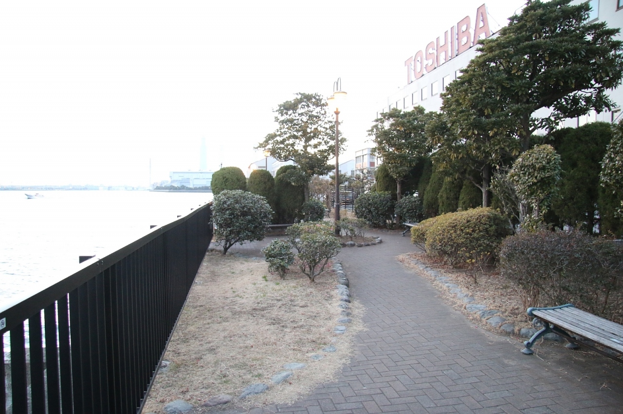 鶴見線のいくつかある終点の一つ、海芝浦駅出口すぐのところにある公園です。というよりも海芝浦駅を出るとこの公園か東芝への入口しかなく社員以外はこの公園以外にアクセス出来ません。また鉄道以外にアクセス手段がないですが、鉄道本数も通勤時間帯以外は少なくまた終電も早いため時刻表を頭に入れておかないと帰りがあぶないです。