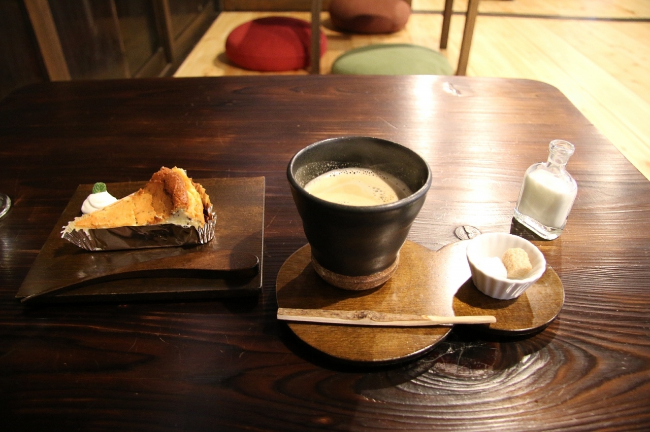 早川の名物?のエゴマを使ったエゴマチーズケーキとコーヒーを頼みました。昔ながらの古民家で食事をしているような雰囲気を味わいました。