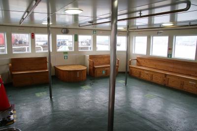 とはいえ若松には歴史的建築も多いですし戸畑大橋や洞海湾を眺めるにはいい観光手段にもなっています。屋内席と屋外席がありますので天気や利用目的に合わせて利用し分けることが出来ます。屋内にはTVも設置されていました。