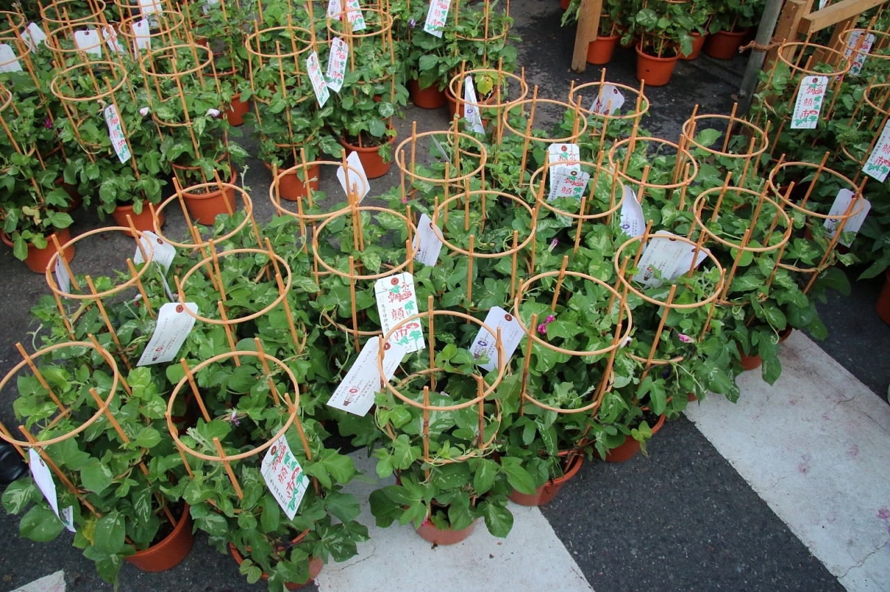 朝顔も数多く売っているので近隣に住んでいたら買って帰ったかもしれません。さすがに遠いので買えませんでしたけど、まだ花は咲いていないですが見ているだけでも楽しかったです。