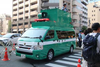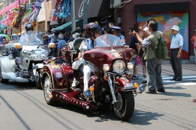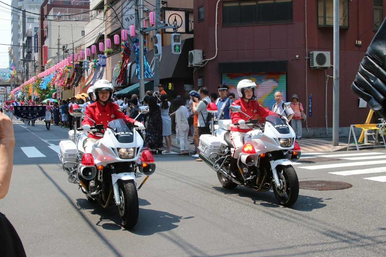 パレードは白バイや舞踊、警官隊や小学生の鼓笛隊、御輿など様々なものがありました。