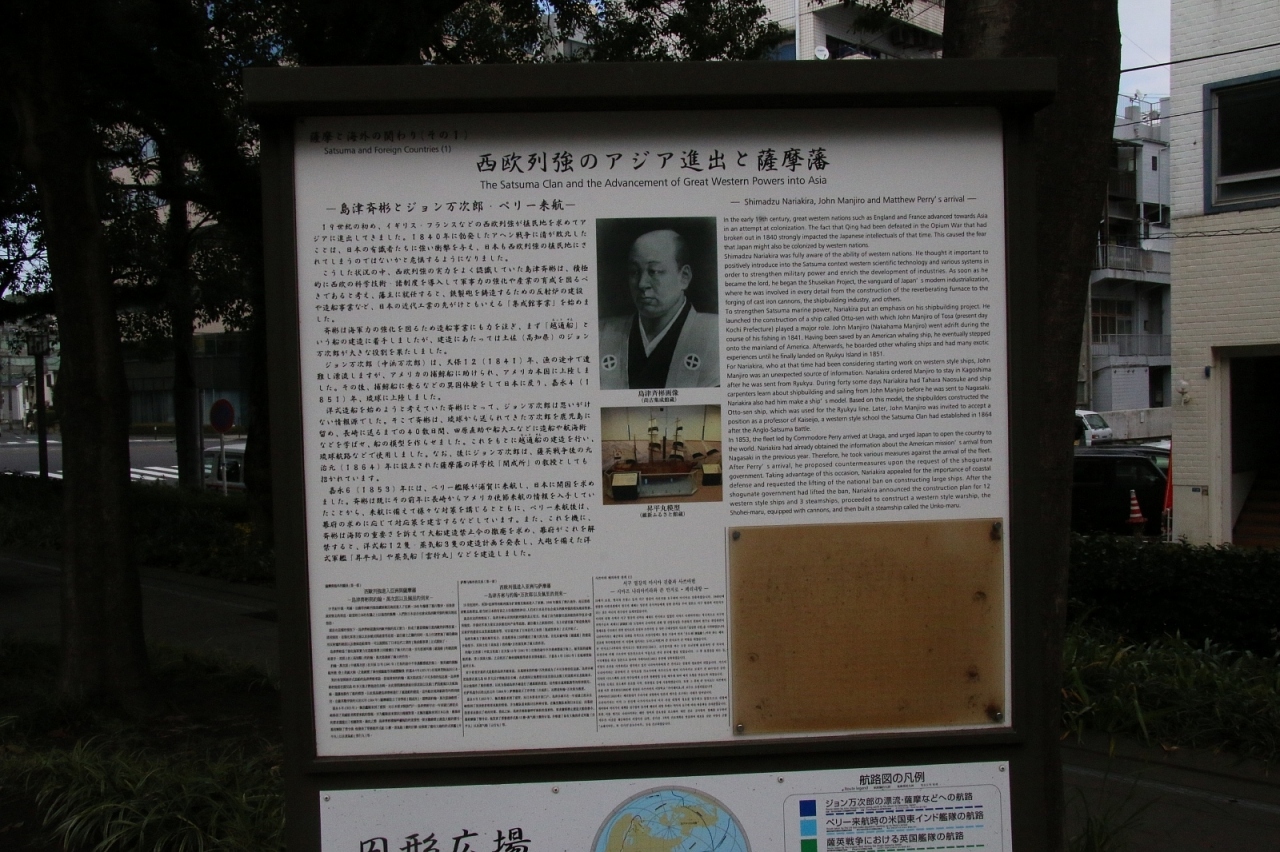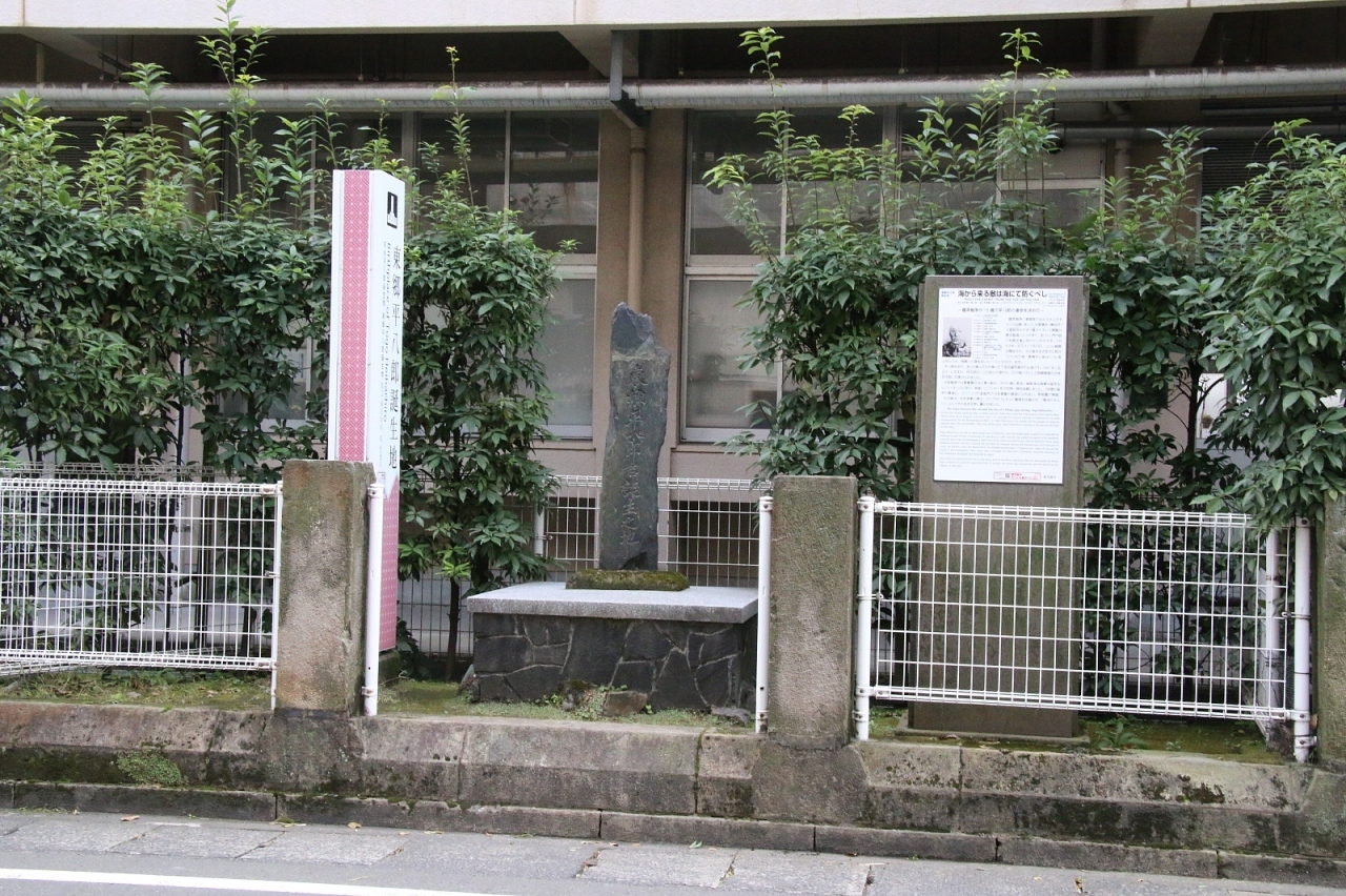 日露戦争の日本海海戦で有名な東郷平八郎の出身地にある碑です。現在は出身地は鹿児島中央高校の敷地になっていて、その裏手にひっそりと碑と解説文が設置されています。解説文の看板がなければ通り過ぎてしまうくらい目立たないのが残念です。