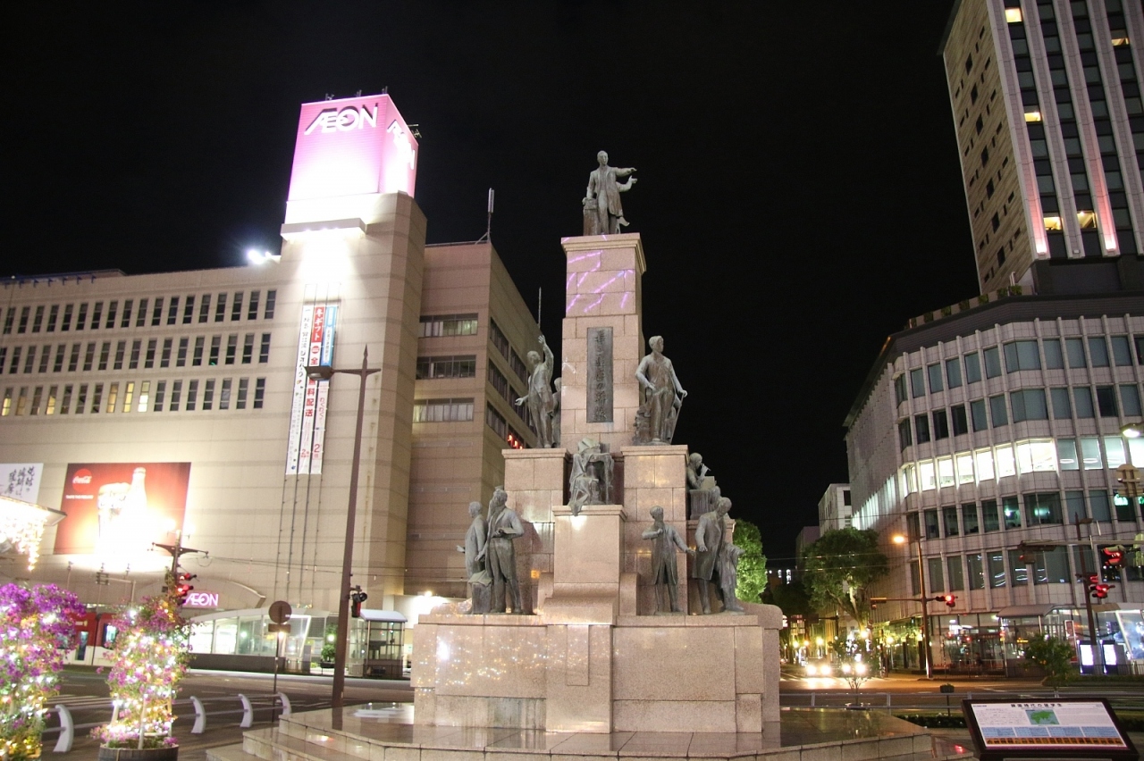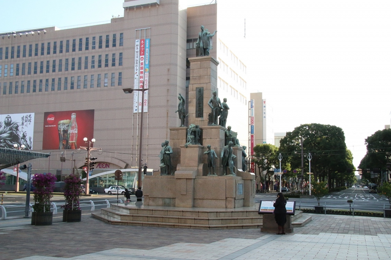 鹿児島中央駅の桜島口を出てすぐの所にある像です。この像は当時海外渡航が死刑だった時代に薩摩藩の命令を受けてイギリス留学した人たちの功績をたたえて作られたものの様です。西郷隆盛、大久保利通の様に誰もが知っている人はあまりいないのですが、後に近代大阪経済の礎を築いた五代友厚や教育制度を普及させた森有礼なども含まれている像です。