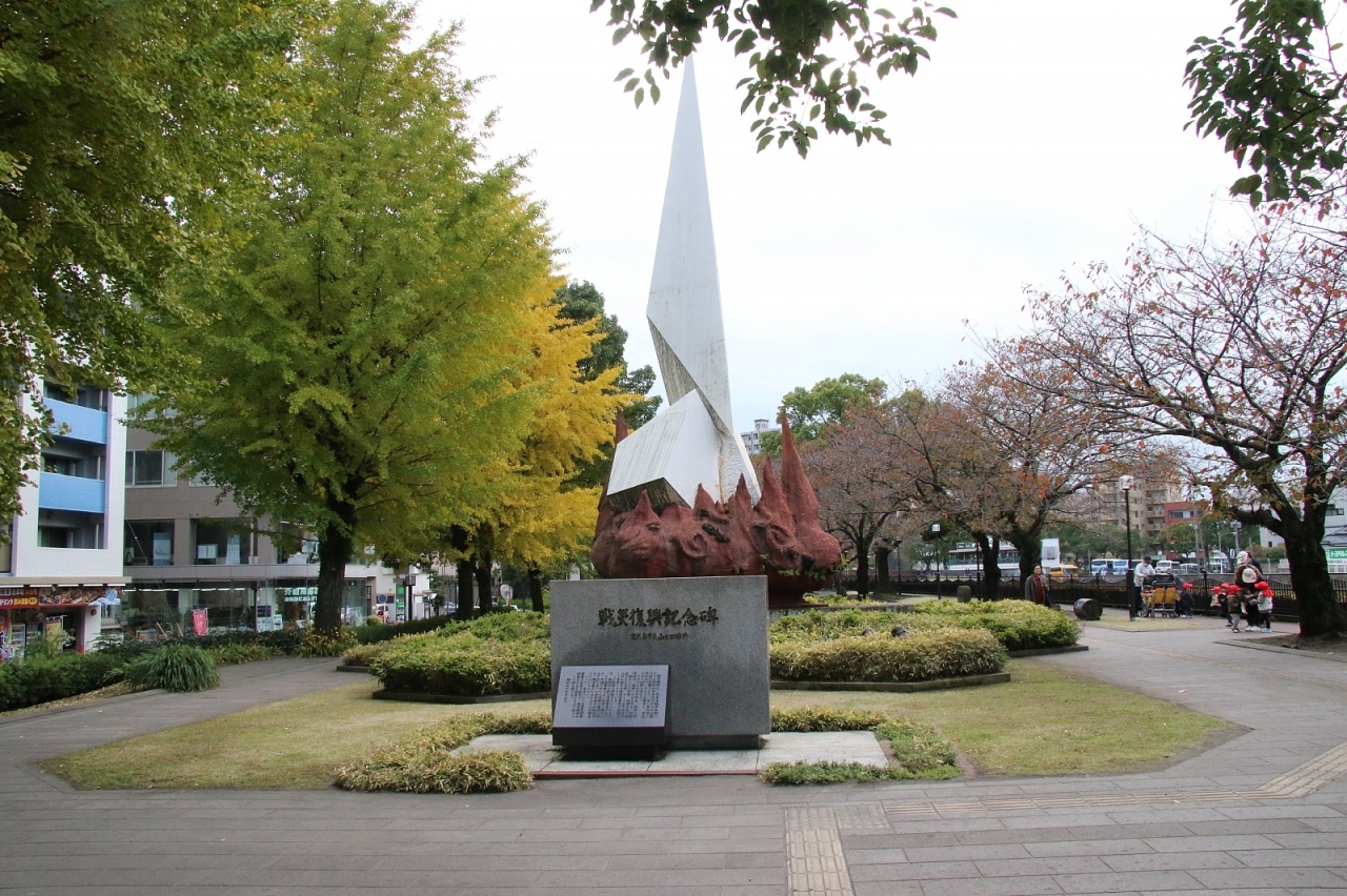 鹿児島で歴史をみていると戦争というと西南戦争、薩英戦争がクローズアップされますが、他の都市同様に太平洋戦争での米軍の空襲による被害が一番多く、市街地が焼け野原になってしまいその復興を記念した復興記念碑です。