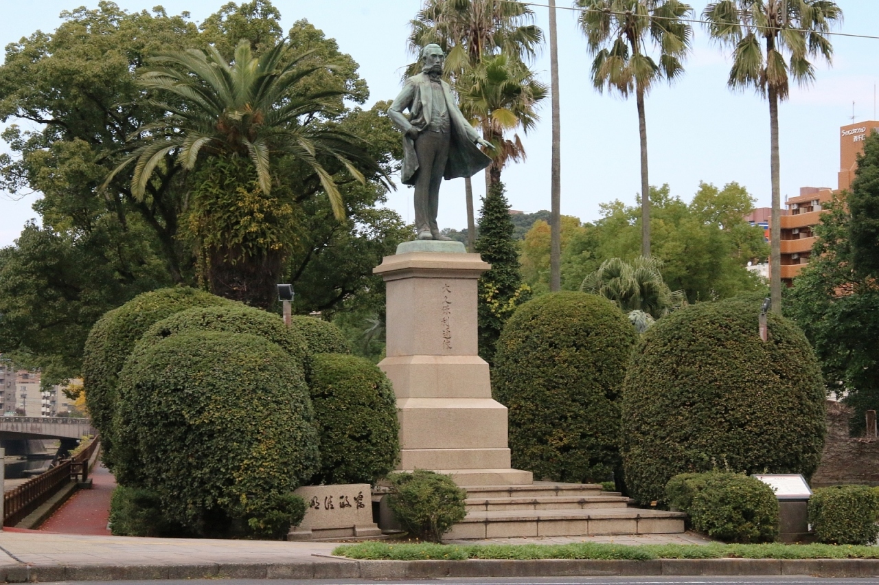 維新三傑の一人、大久保利通の像です。大久保利通は鹿児島での評判が悪い(日本全体でもそんな気がします)と聞いていましたが、立派な像がありほっとしました。西南戦争に勝利した後に維新政府の内務卿として日本の改革を行おうとした矢先の襲撃で亡くなられていますが、西郷との確執、戦争の事もあり鹿児島ではあまり評価されていないとか・・・。