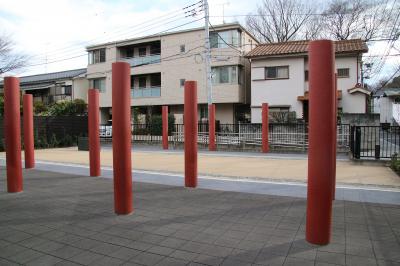 宅地化された場所で痕跡はあまりみえませんが大國魂神社の側の国府館あとは柱が復元?されていてこの地にあったことがわかります。