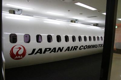 展望デッキの入口にJACのDHC8-Q400のモックアップがあり座席も設置されていました。他展望デッキ周囲には飛行機関係のものが展示されていました。