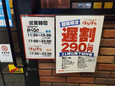 でもこのお店、「はなび」とお好み焼き屋の「ぼちぼち」が同じ店内にあるというものすごく珍しいスタイル。外には「ぼちぼち」の暖簾が出ていてお店の前でちょっと考え込んでしまいました。日中は「はなび」だけ、夜間は「はなび」と「ぼちぼち」が両方オープンしています。