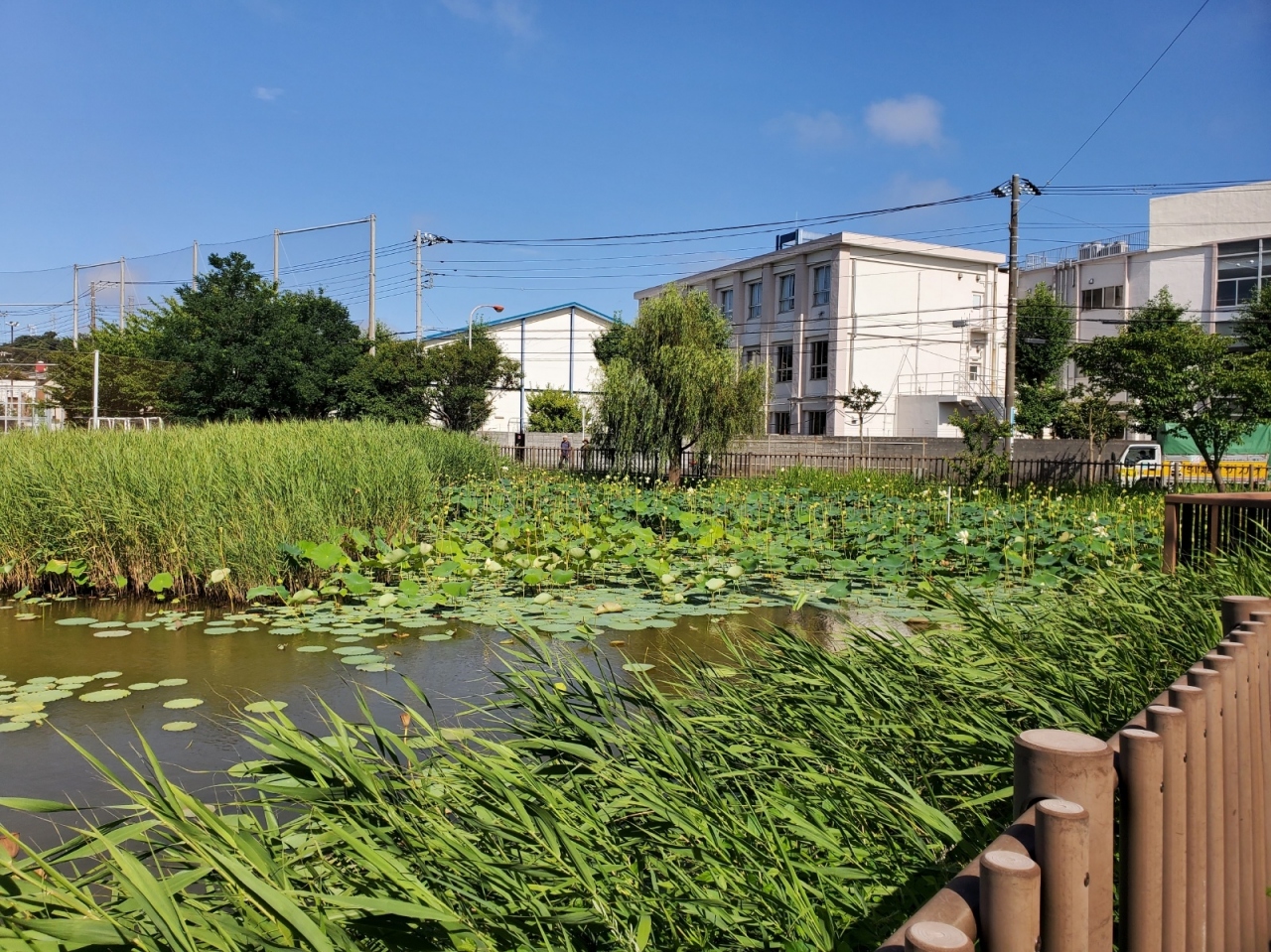 少し距離を置いて池が二つありますが、片方は今から20年ほど前に鵠沼高校のグラウンドに転用された部分もあり池以外の部分のほとんどがグラウンドになっています。そんなわけで少し奥の場所にある池の方が現在は昔ながらの雰囲気を残しています。