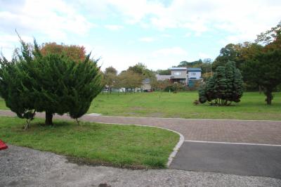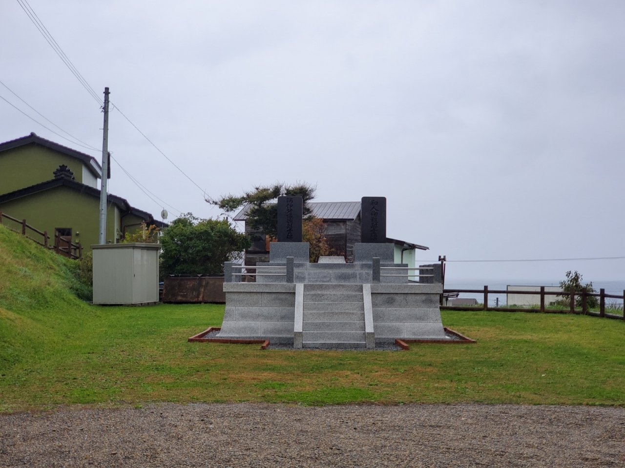- 野原の中に史跡があります。天気が良ければ本州が見えるはず。