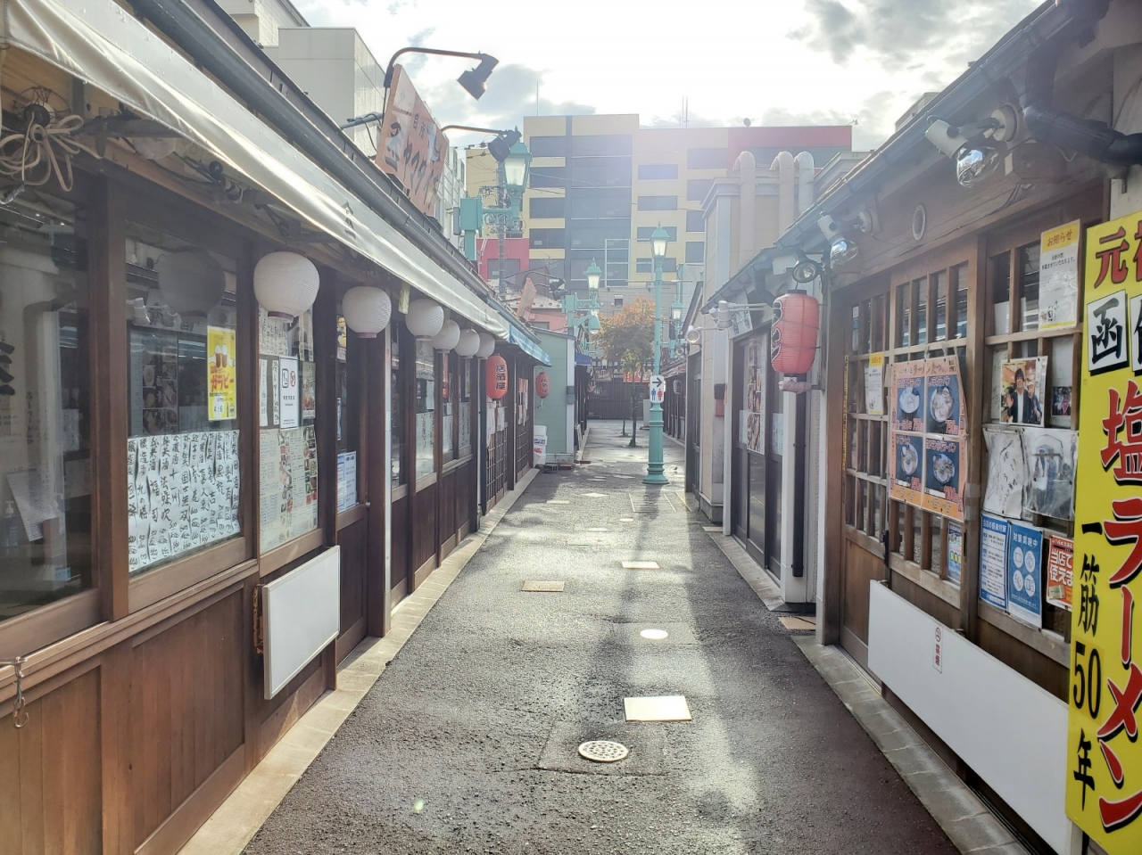 函館駅近くにある横丁でお酒が飲める店の他函館名物の塩ラーメンのお店も多くあるみたいです。旅行最終日の朝の散歩で見つけましたが、お店の性質上朝はやっていませんでした。まあ朝は函館朝市行くつもりだったのでそれは良いんですが、最終日に見つけたので寄れなかったのが残念。お店の数も多いみたいですので次回函館に来る機会があればぜひ寄りたいです。