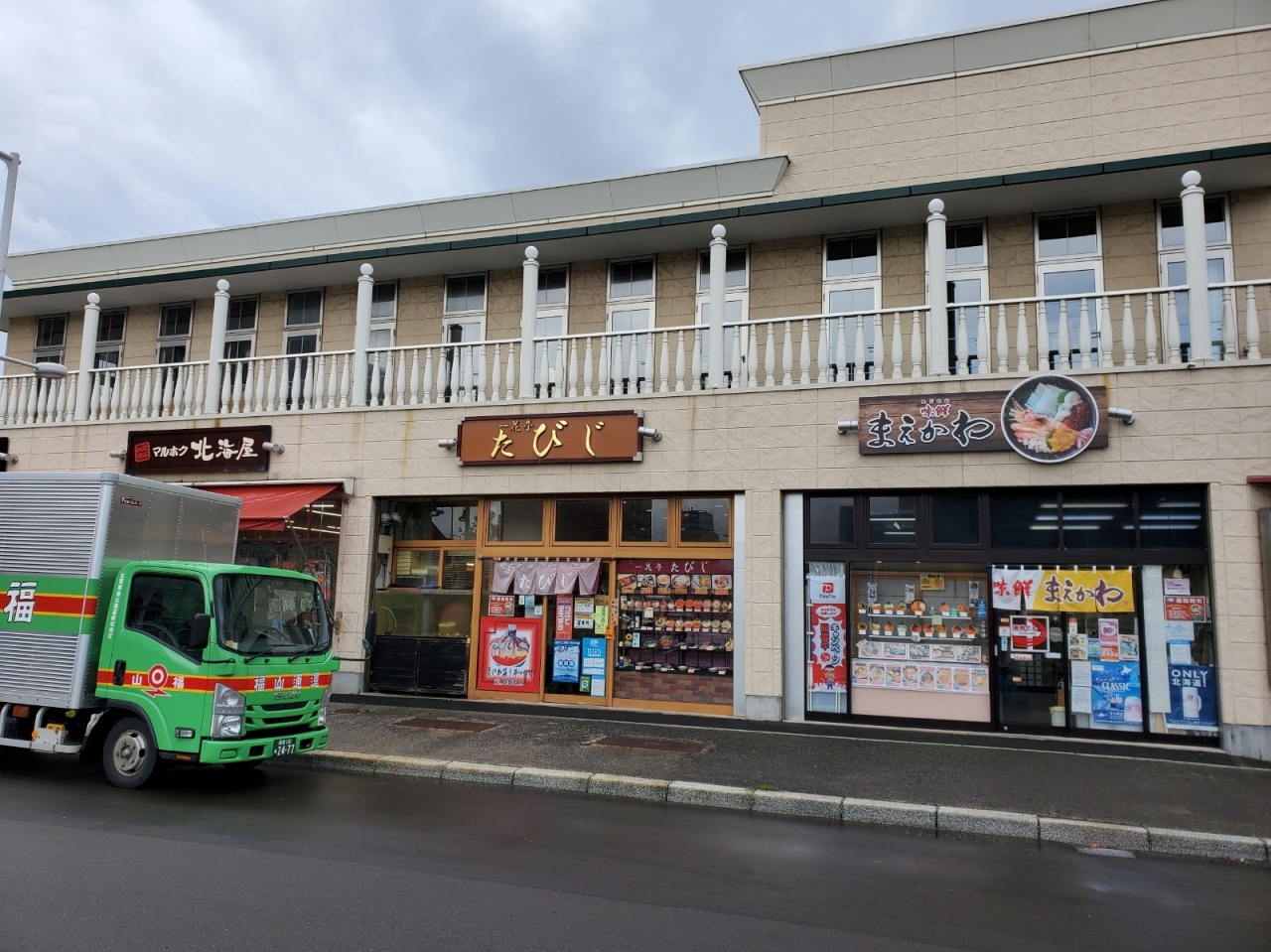 函館駅からすぐのところにある朝市の中のお店です。早朝からでも開いているので朝食を食べるのにもちょうど良いです。だいたいホテルの朝食を付ける私も今回は朝食を付けず朝市までやってきました。