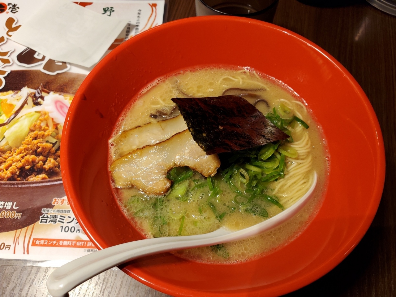 金山駅の駅ビルにある豚骨ラーメン店です。麺場居酒屋の名前の通りお酒や酒のつまみも扱っている様ですが基本的に酒を飲まないので豚骨ラーメンを食べました。でも一人で入店している人の方が多いですし、ラーメンだけの人も多い様子でした。