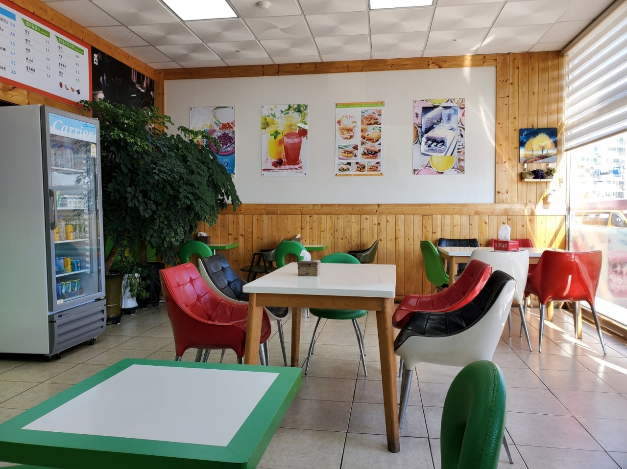 金浦空港国内線ターミナルにあるフードコートで、1階と3階にあり私は1階を利用しました。お店の数はいくつかありますが共通のキオスクで注文し窓口で受け取る形です。他にレジで注文する窓口も入り口にありました。日本語化すると文字が出てこない事もあり困惑して韓国語で購入しようとしていると、店員さんから日本語で英語でなら文字が出ますと言われその通りにすると購入できました。いくつかのメニューから北村餃子という水餃子の様な定食を選び購入しましたが、とても美味しい餃子でした。韓国なので付け合わせのキムチは辛かったですが、辛い物は好きなのでとても美味しかったです。