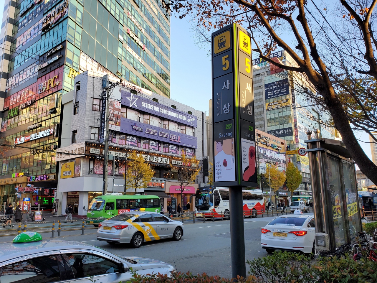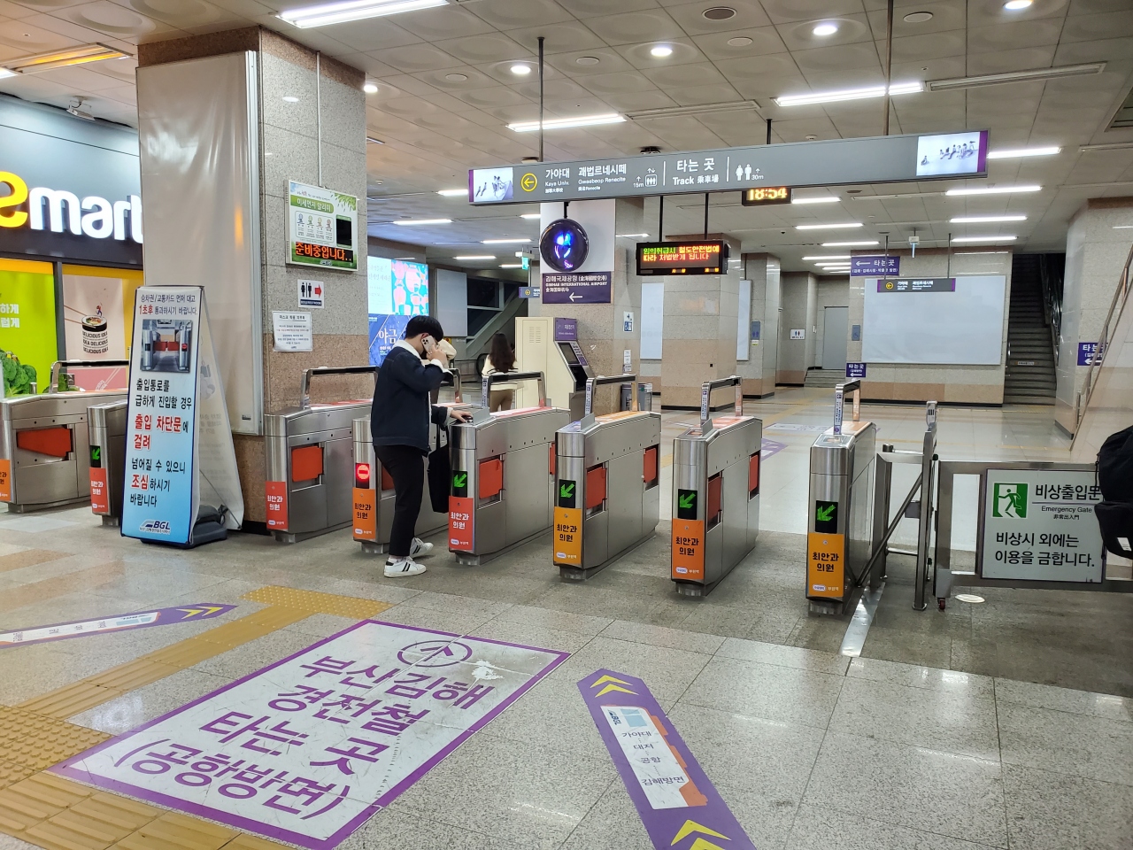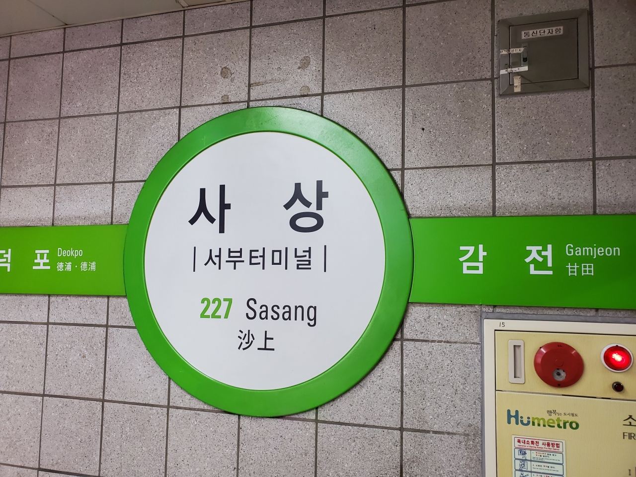 釜山西部にある駅で地下鉄2号線と金海軽電鉄、そして西部バスターミナルがある交通結節点です。西部バスターミナルはメインバスターミナルではないですが、それなりにバスの発着が多いですし、金海軽電鉄は釜山の空の玄関口である金海空港へ直結しているので、沙上駅自体は郊外駅ですが、観光で釜山を訪れる場合は利用する人も多いと思います(KTXとフェリーは釜山駅に到着します)。その為駅周辺は発展していてスーパーもありますし、飲食店、屋台も多く並んでいました。駅自体にもコンビニなど買い物できる場所も多かったです。2号線と金海軽電鉄はそこそこ離れていて、エスカレーターなどもあるため荷物が多いと移動が少し大変かもしれません。
