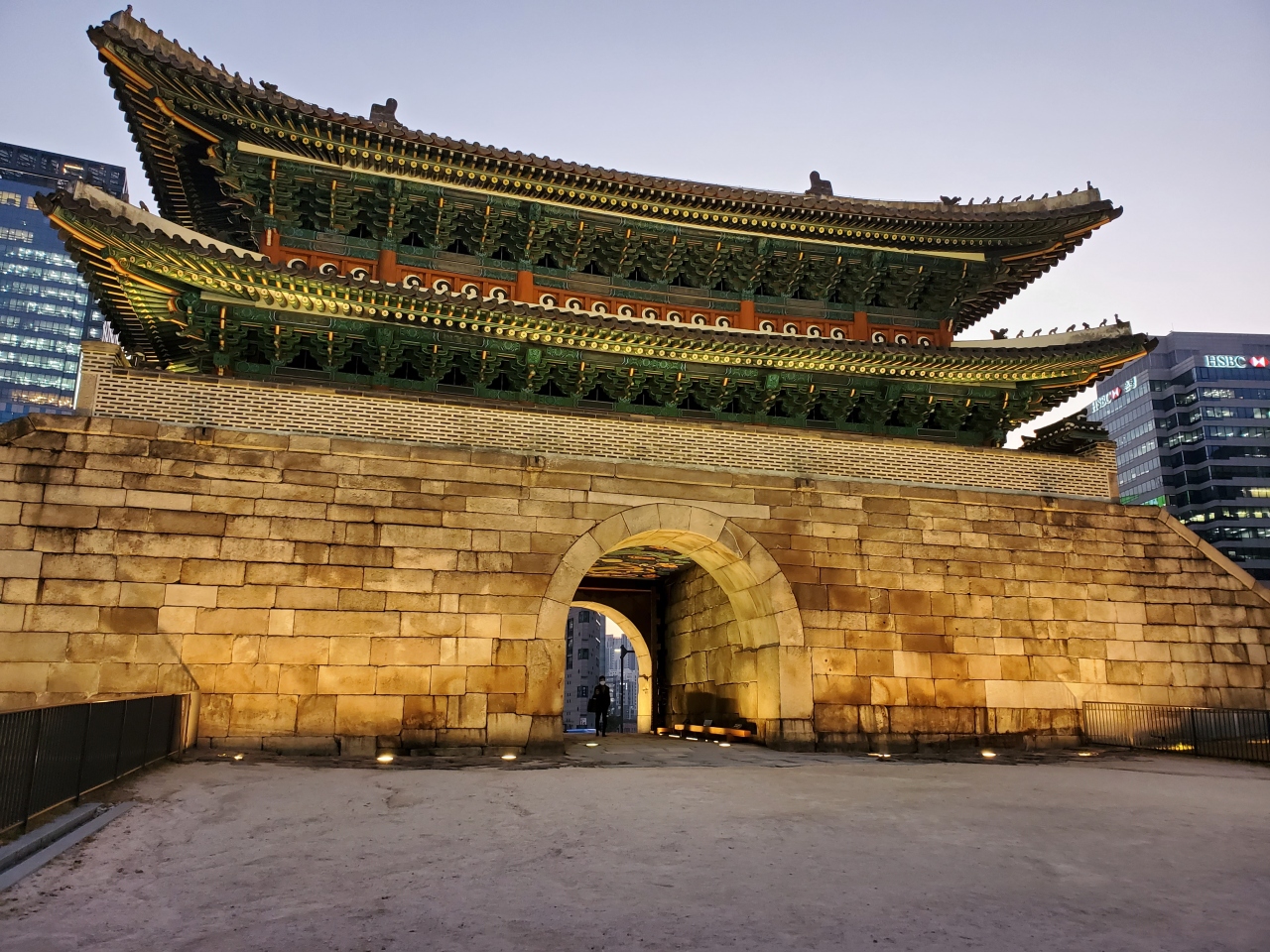 ソウル駅から徒歩10分ほどの所にある門で、南側にあるので南大門とよく呼ばれていますが、正式には崇礼門と言います。1300年代に建築され、その後拡張されてきた門ですが2008年に放火により焼失、その後再建されました。