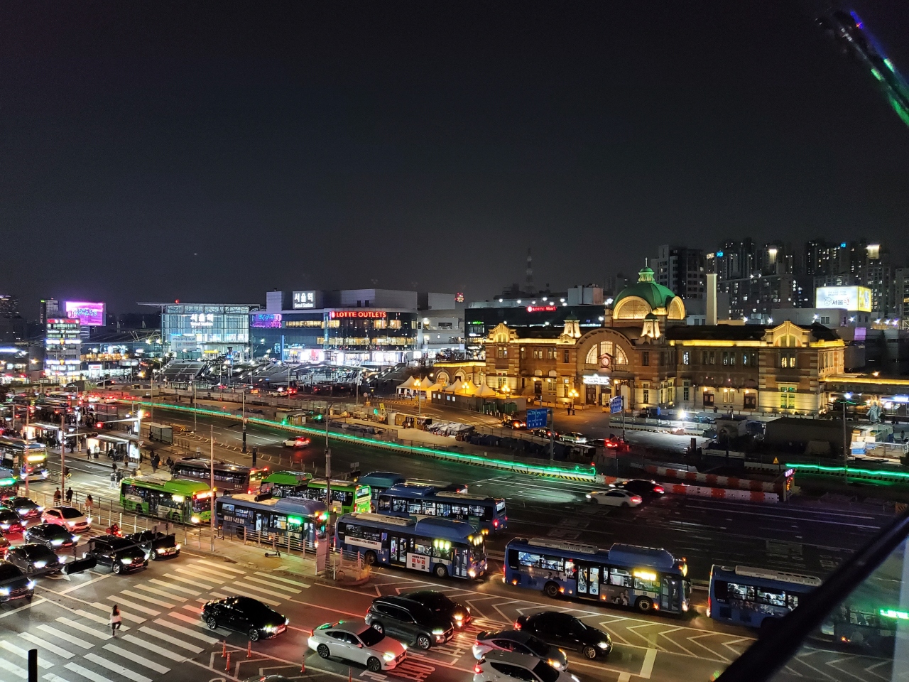 ソウル駅を上空から眺める事が出来るのでなかなか爽快な見晴らしです。観光地としてもですが、人が多いところでもあるので常に人が多く歩いていました。- 旅行時期