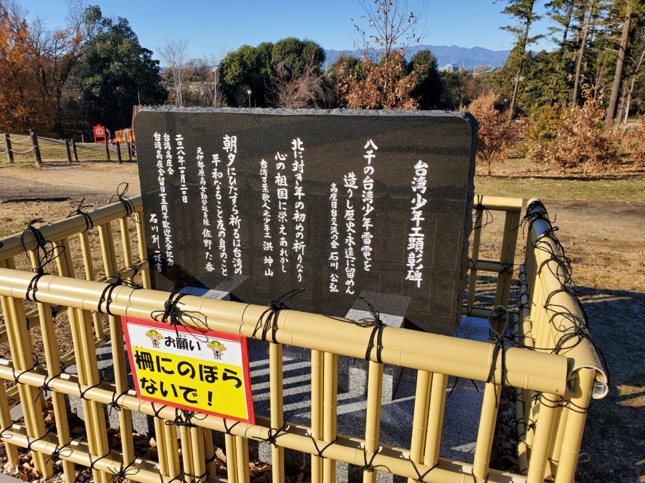 また地下壕とは離れた公園内には台湾少年工顕彰碑があります。これは台湾少年工が戦後母国に帰り戒厳令解除後台湾高座会を作り旧友との親交を深めたそうです。2018年、来日75周年を機に元少年工も高齢化が進みこれが最後の大規模な歓迎式典になるということで設置されたものです。- 旅行時期