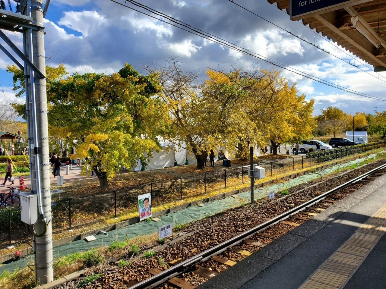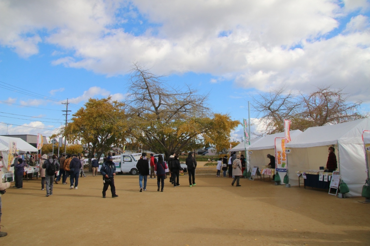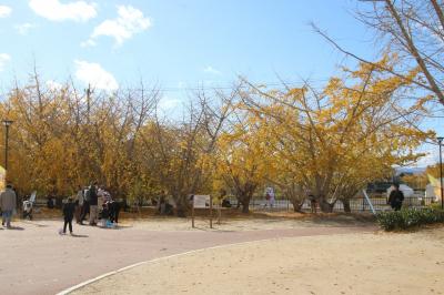名鉄尾西線山崎駅から降りてすぐの所にある比較的新しい公園でイベントを開催していました。例年行われている「そぶえイチョウ黄葉まつり」はコロナの影響か中止になったそうですが、公園で「祖父江ぎんなんマルシェ」として屋台やイベントを行うお祭りになったようです。公園にもイチョウが多くちょっと季節を過ぎてしまった感じはありましたが黄金色で美しかったです。あまり時間がなくイチョウをしっかりと見れなかったのは残念です。
