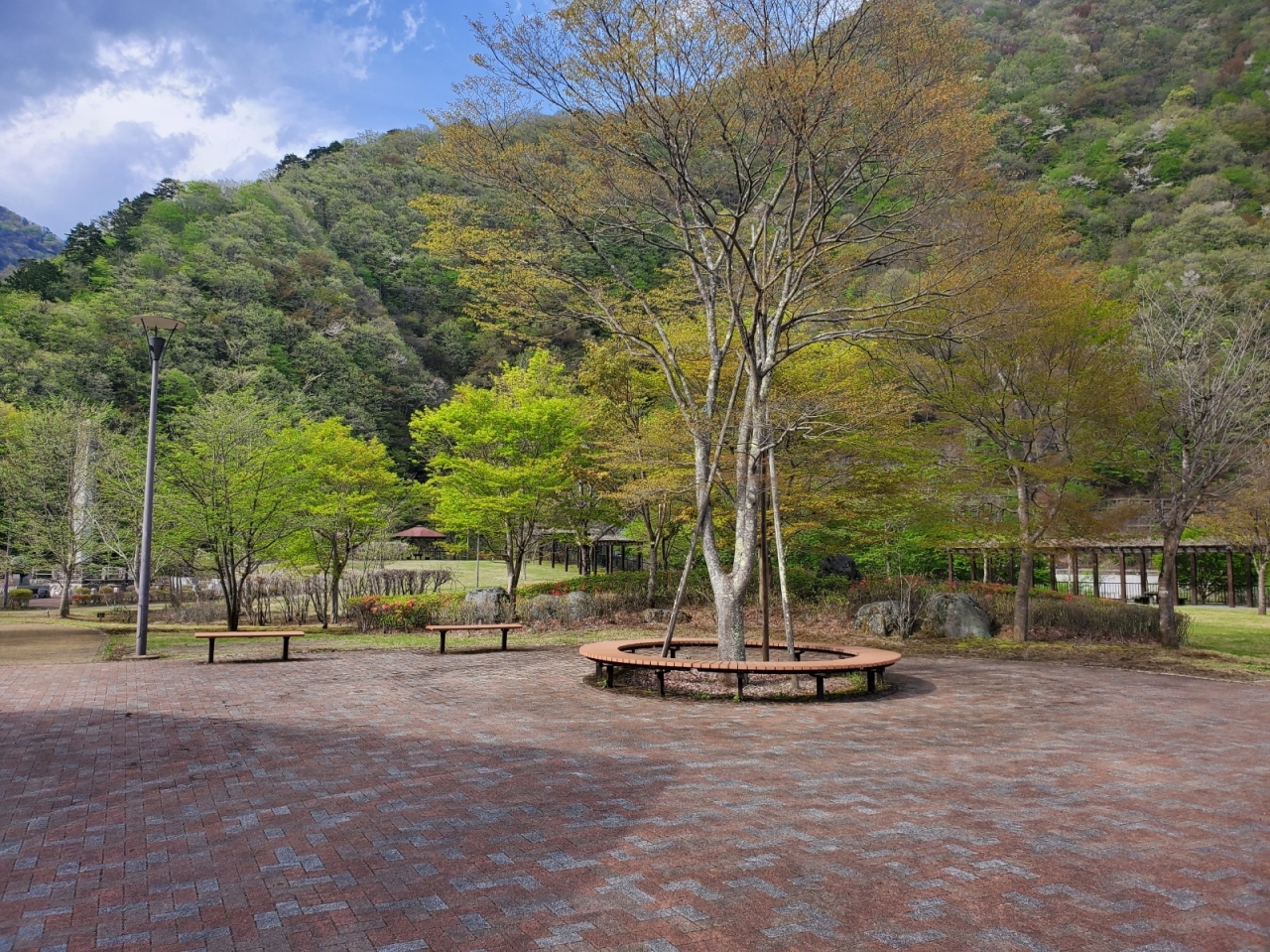 深城ダムによってできた人造湖であるふかしろ湖湖畔の公園ですが、公園から水面は見にくく綺麗に整備された公園ではありますが湖畔というイメージはあまりありません。この地区には恩賜林がありそれに関する記念碑などがある他緑豊かな公園で人もほとんどいないので落ち着いて過ごすことが出来ます。