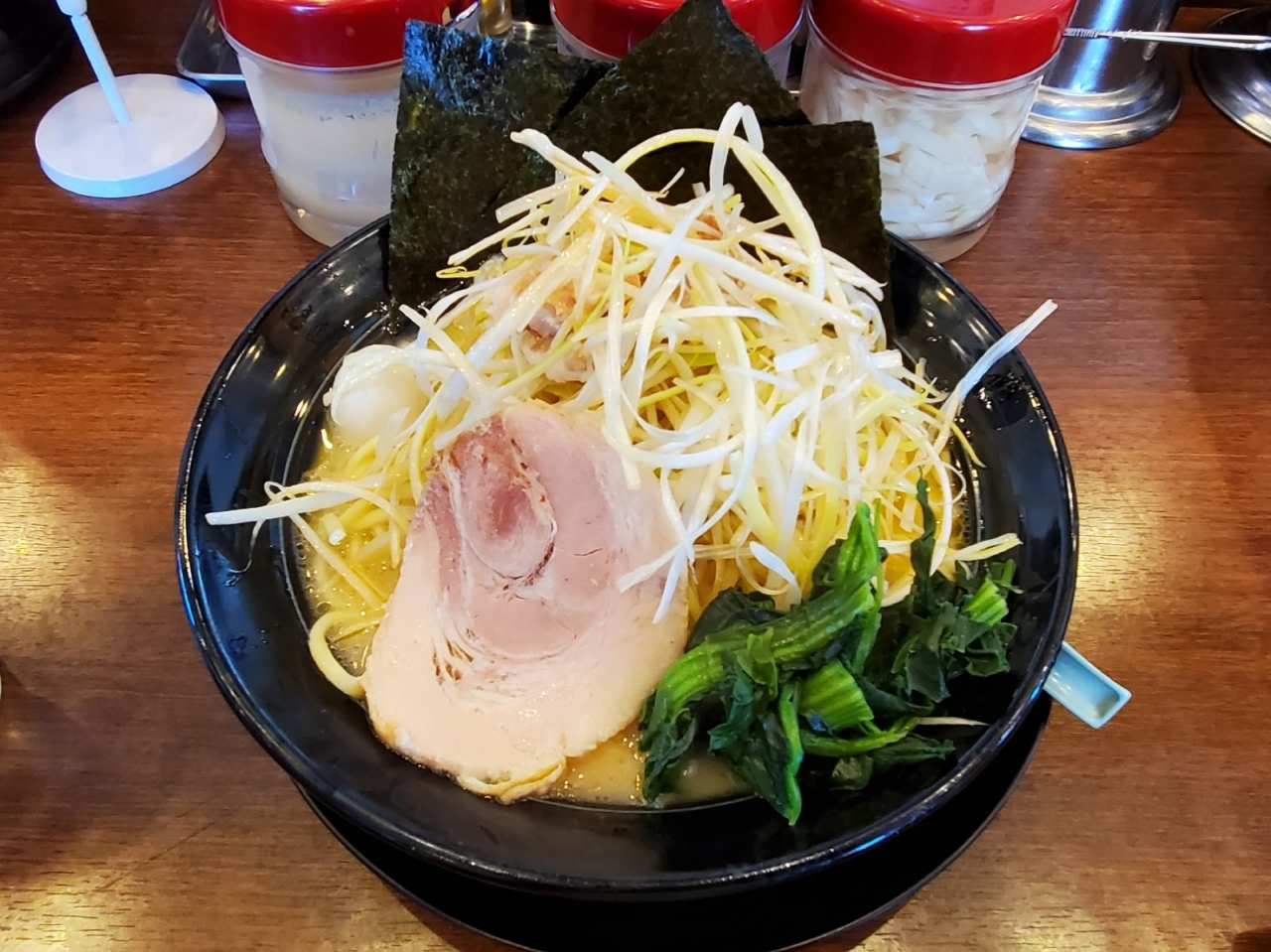 オノミチという店名ですが尾道ラーメンではなく家系ラーメンです。どちらかというと本家に近いですがそれでいてあっさり目。メニュー数もそんなに多くなく家系ラーメンと支那そばが中心です。今回はネギラーメンを注文しました。