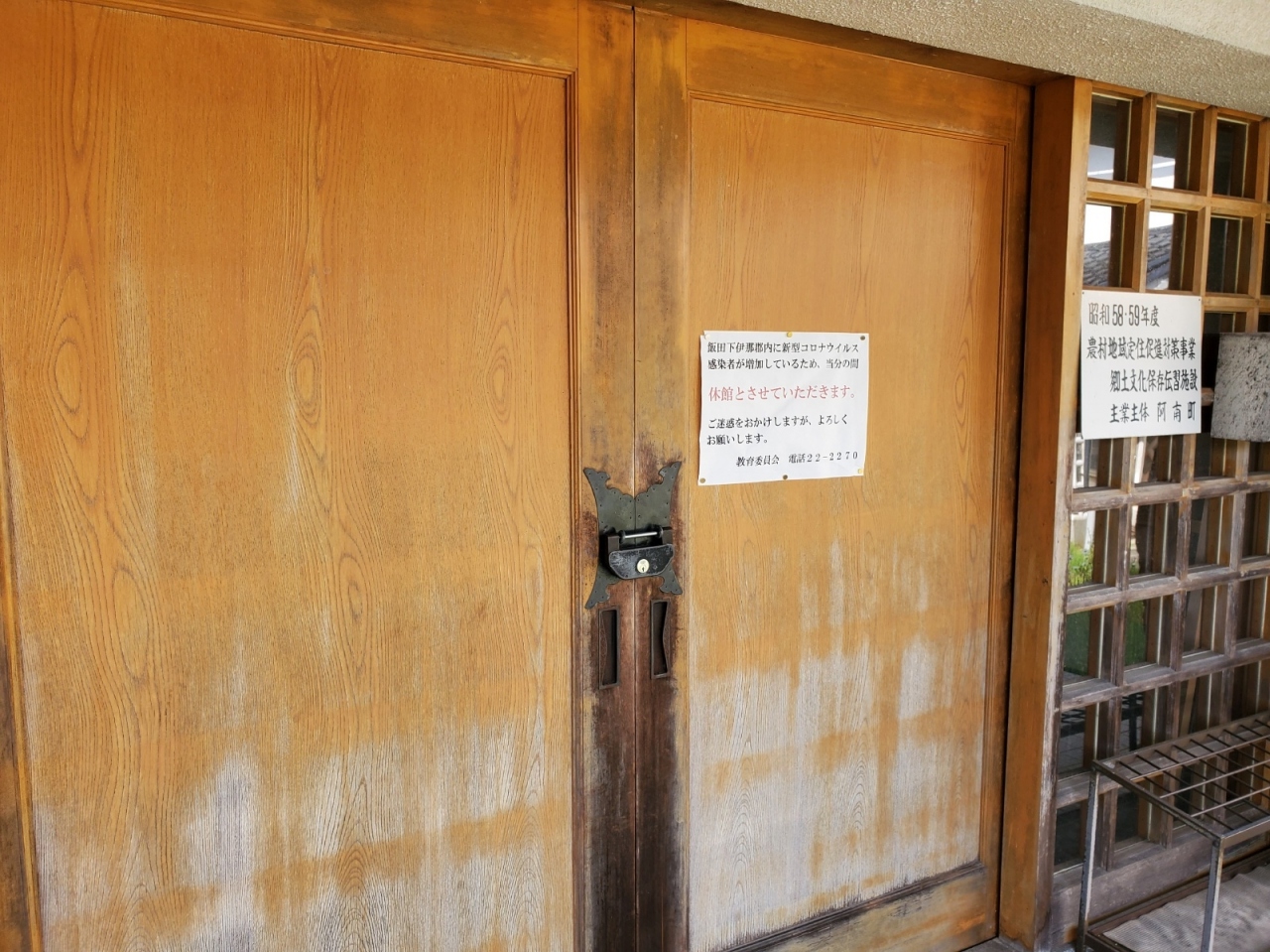 道の駅信州新野千石平から徒歩で5分程、車でも1分の距離の所にある施設です。古くからある蔵を改装してできた施設で阿南町の農業に関連する民俗を展示しているそうです。道の駅から近くなのでふらっと来てみましたが、2022年5月の時点でもコロナ対策で閉館中でした。