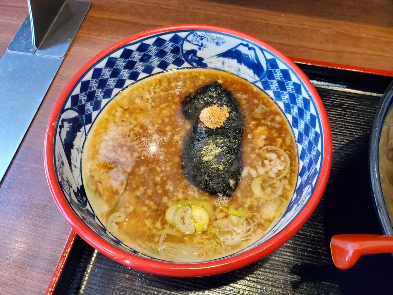初めてで悩みましたが背油好きなので背油つけ麺を選択。割と甘めの背油ですがこってり感は強くなくするっといけました。