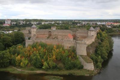 デンマーク統治時代のエストニアの国境線沿いだったナルヴァ川沿岸に1254年に要塞を築城したのが始まりで当時は木造の館だったそうです。当時の国際情勢としてはナルヴァ川の対岸まで進出していたノブコロド共和国のアレクサンドルネフスキーとデンマークがペイプシ湖交戦し敗北、ノブコロドに対する領土要求を取り下げる事になった時期でノブコロドに対する防衛のための要塞でした。