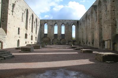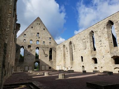 リヴォニア最大の修道院だったという事は今も残る廃墟の高さ34mあるというファザードで良くわかります。修道院の北側には過去に修道女たちが生活したスペースの跡があります。基礎や礎石が残っているだけですが当時の区画がわかるので生活はイメージしやすかったです。