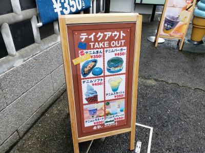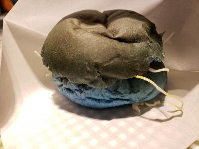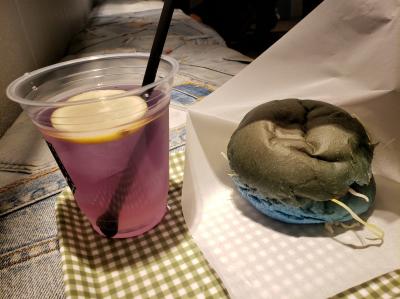 メインとしてはデニムまんと個数限定のデニムバーガー。14時すぎですがまだ個数限定のデニムバーガーは残っていたのでせっかくなので注文しました。しばらく待つと出てきたのは確かに食べる気がちょっと失せる色・・・。