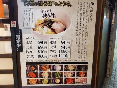 メニューは基本的に油そばの一択。量とトッピングを選択する形です。