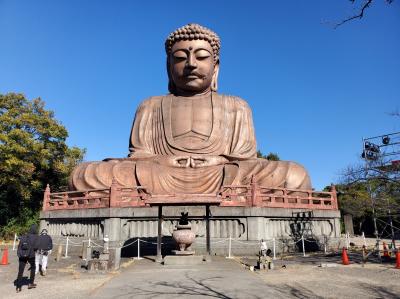 昭和天皇(当時は皇太子)ご成婚記念として実業家の山田才吉が1924年に着工した大仏で日本で初めての鉄筋コンクリート造りの大仏で、完成当時は日本で一番大きい大仏でした。大正末期~昭和初期で一番大きいという事は、奈良や鎌倉の大仏よりも大きいという事になります。2018年に調査を行った結果鉄筋コンクリートで大枠を造り、モルタルで細部を作った事などがわかり、2021年に重要文化財指定されています。