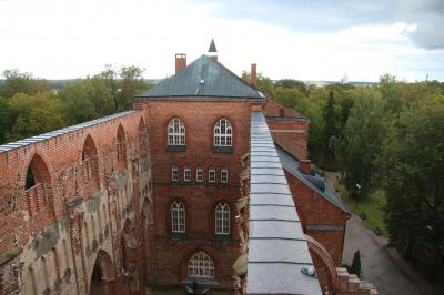 もともとは1200年代にカトリックの教会として造られた後宗教改革で1520年頃に廃墟となりロシア帝国末期には塔の上に給水塔まで造られていた大聖堂跡を改修し登れるようにしたものです。中は螺旋階段ではありませんが狭く勾配の急な階段で上がっていくため冬季は閉鎖になるようです。