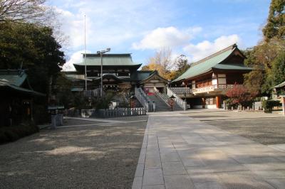 神社は何より山門がとても立派で威厳・風格があります。また参道の鳥居も二車線道路にまたがる形で立っていて迫力がありました。