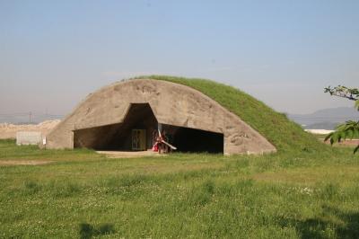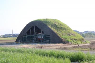 宇佐飛行場跡にある掩体壕はいくつか現存していますが、この城井一号掩体壕は唯一見学できる掩体壕です。ただこの城井一号掩体壕から近隣の掩体壕を遠めに見る事が出来まして、他の掩体壕は農家の機械入れなどに使われている様子でした。