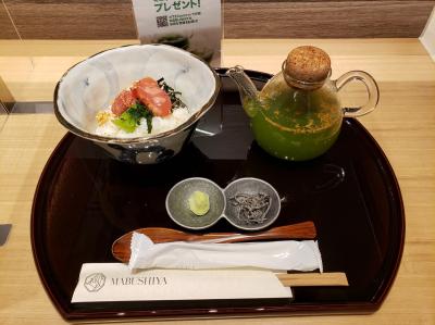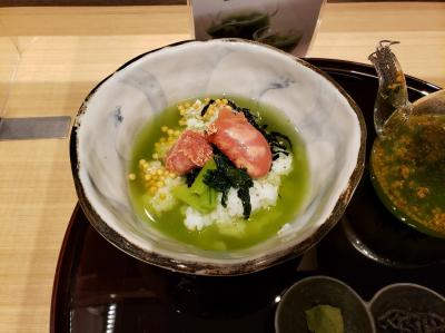 まぶしごはんに抹茶だしをかけて、という説明なのでお茶漬けが中心になっているお店です。昼を食べてからそんなに時間が経っていない上に昼かなり食べていたので、牛は避けて明太子と高菜茶漬けの単品をオーダーしました(正式な名前は忘れてしまいました・・・)。