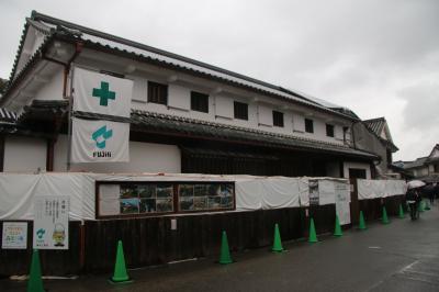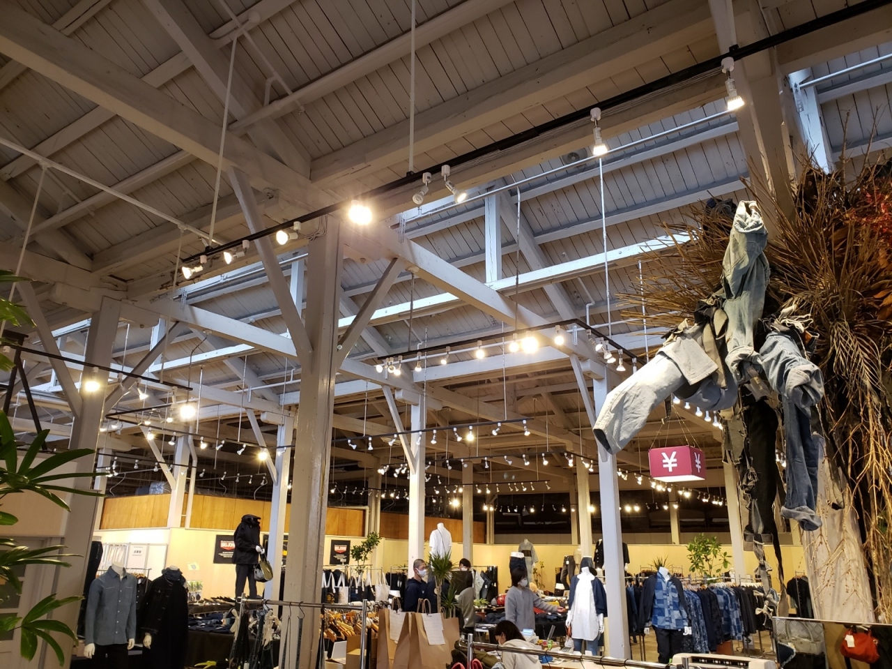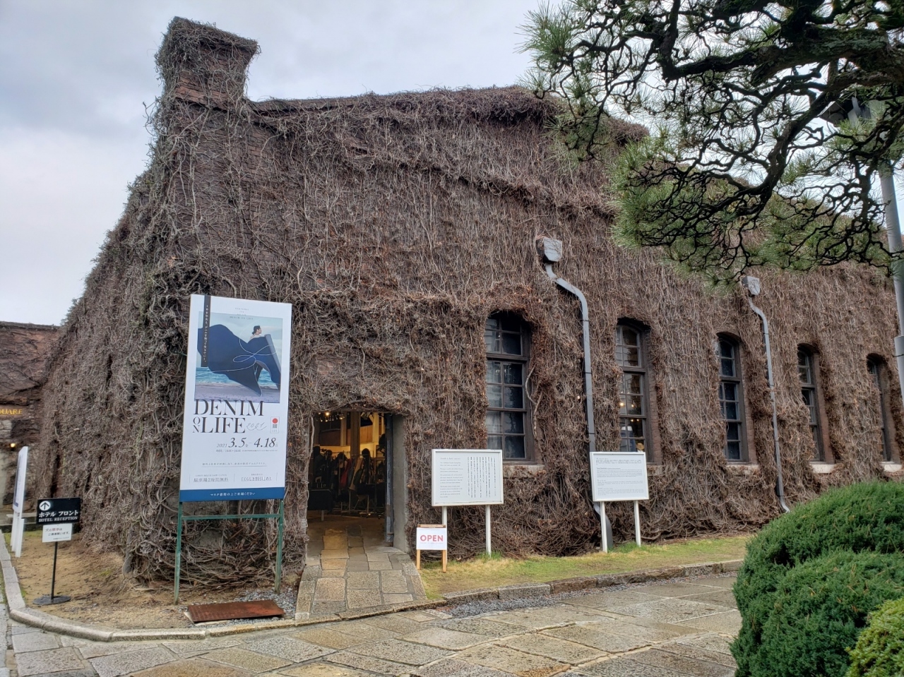 元々は1889年に造られた倉敷紡績の工場で、工場内の温度・湿度管理で蔦をはやした為今でも建物に蔦が生えていて、これがアイビースクエアの名前の元になっています。工場のままの姿で残っていて現在は展示会場として利用されていて、展示会がない時は外観のみしか見られないそうですが、訪れた時は倉敷産のジーンズの販売会が行われていて中まで見る事が出来ました。