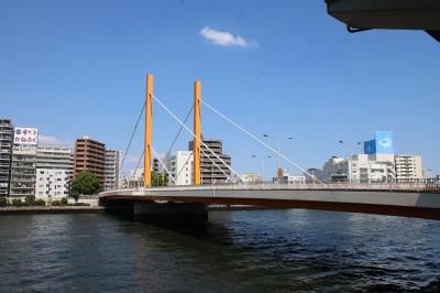 隅田川にかかる橋の一つでオレンジ色に塗装された斜張橋の構造を持っています。一つ下流に架かる清洲橋に比べると少し構造的には目立たないですが綺麗に整備されていると思います。浜町と新大橋を結ぶこの地には江戸時代から架橋されていたそうです。