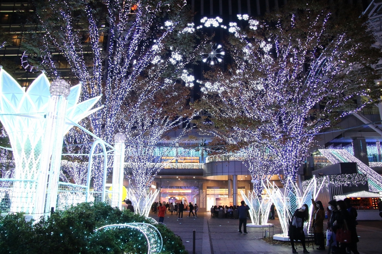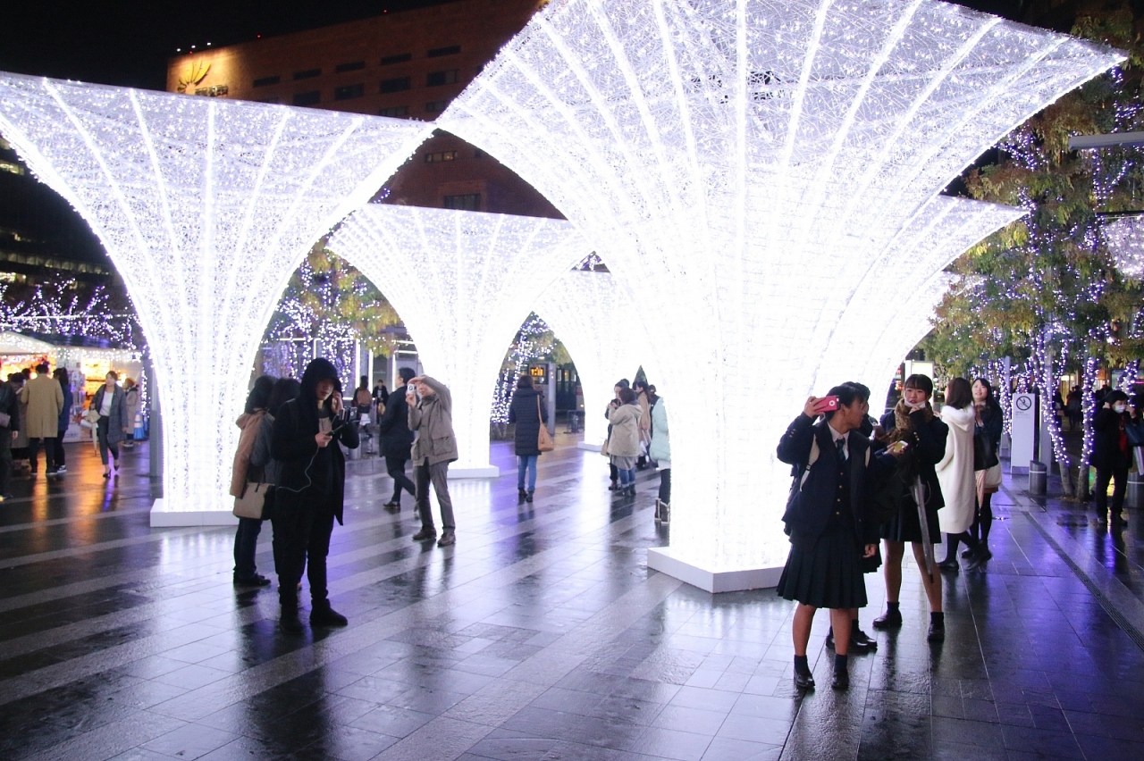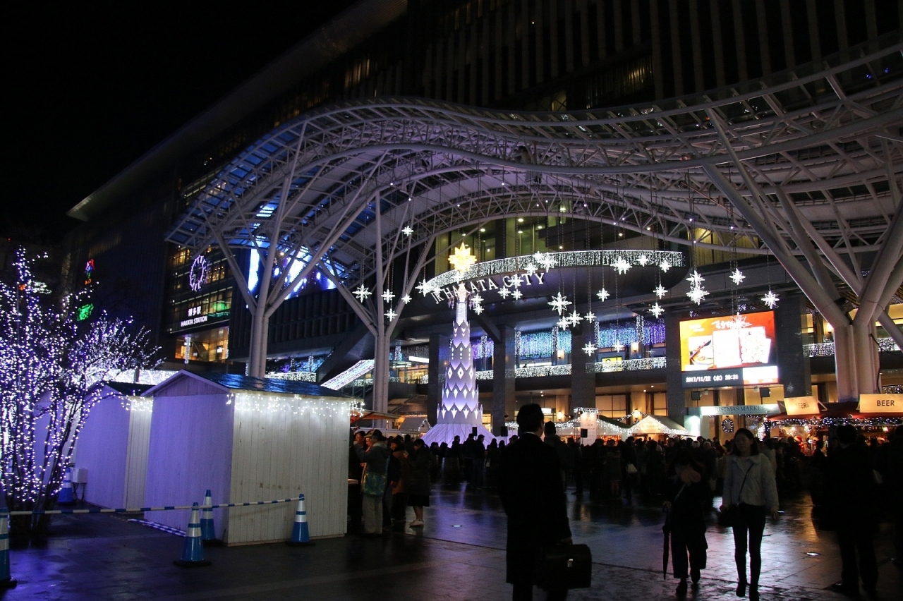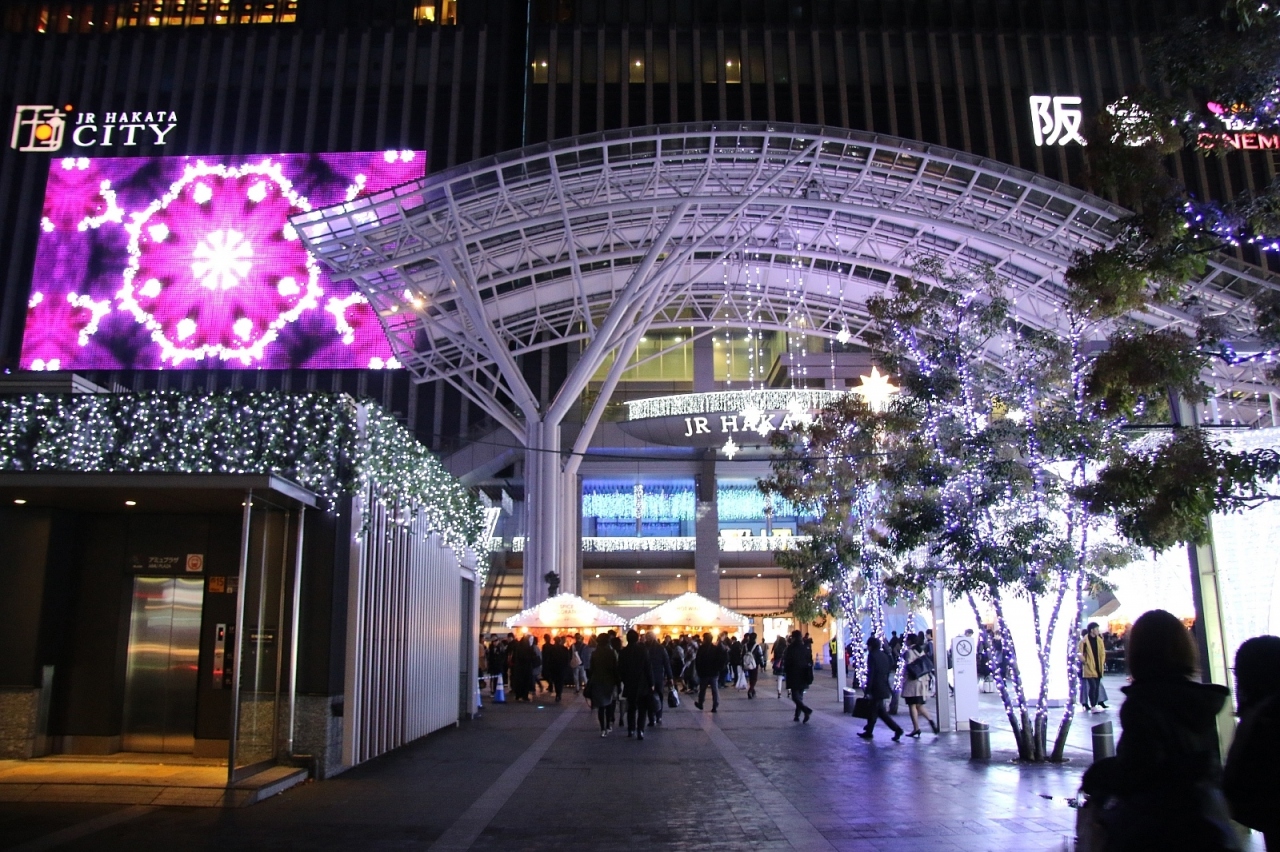 博多駅西口のJR博多シティでイルミネーションイベントを開催していました。九州の中心駅のイベントだけあって大規模で一面イルミネーションという感じになっていました。