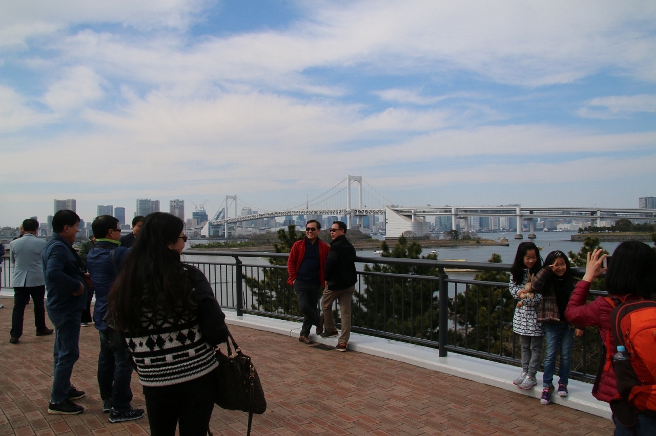 お台場海浜公園と見える景色はあまり変わらないですが、海浜公園より高い場所に展望台があるので景色はいいと思います。特にレインボーブリッジはここから写されたものも結構見ます。お台場自体が海外で有名な観光地ということもあり外国の方が結構いらしていました。ちなみに自由の女神もここからが良く撮れます。