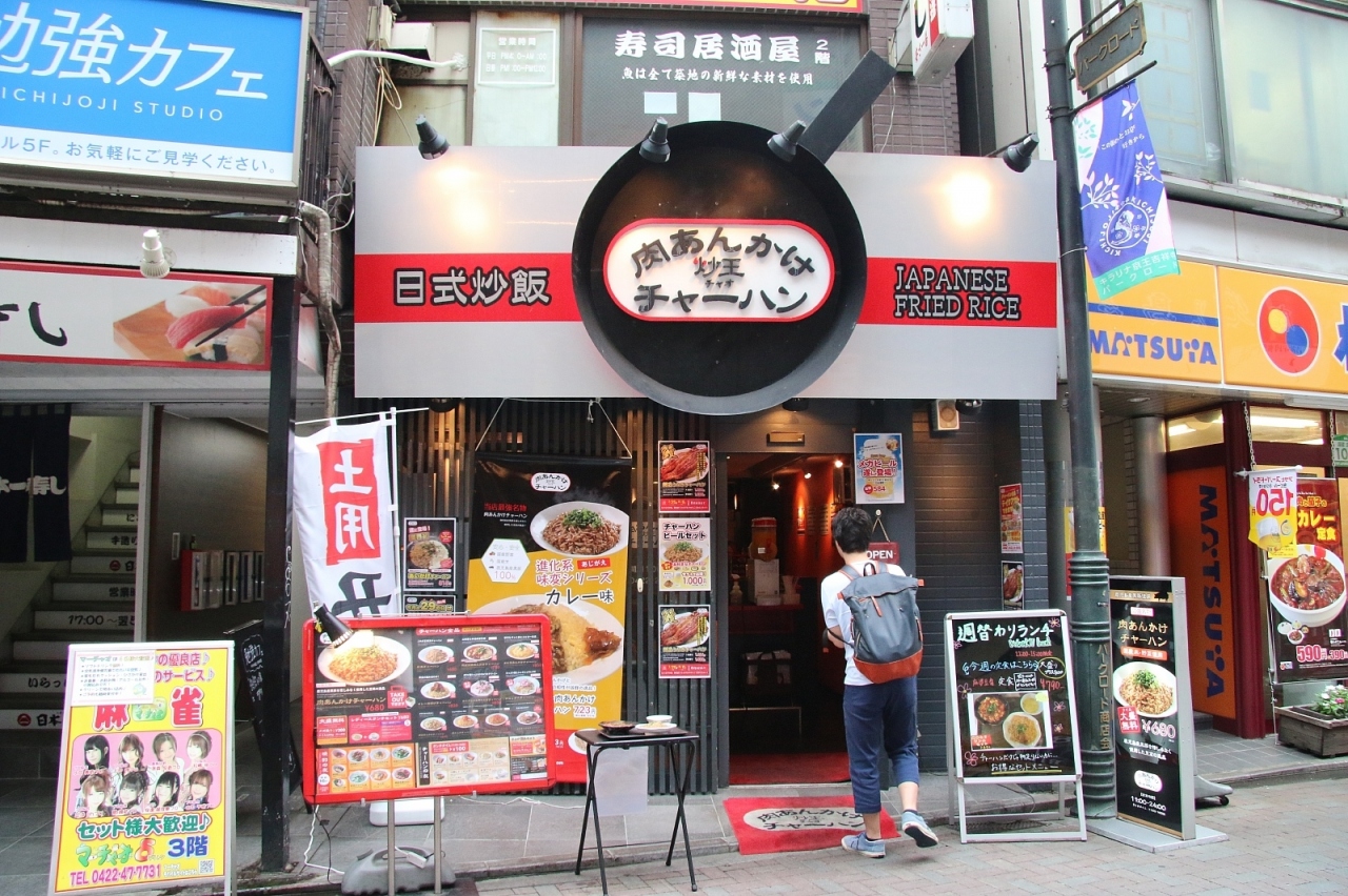 吉祥寺駅南口から徒歩数分のところにあるあんかけ炒飯専門店です。専門店なので炒飯ばかりなのですがあんかけの種類も選べるほか2種類かけられる合がけ炒飯もあったりして選ぶ楽しみもあります。また大盛りまでは追加料金なく食べれるので大食いの人でも良いと思います。