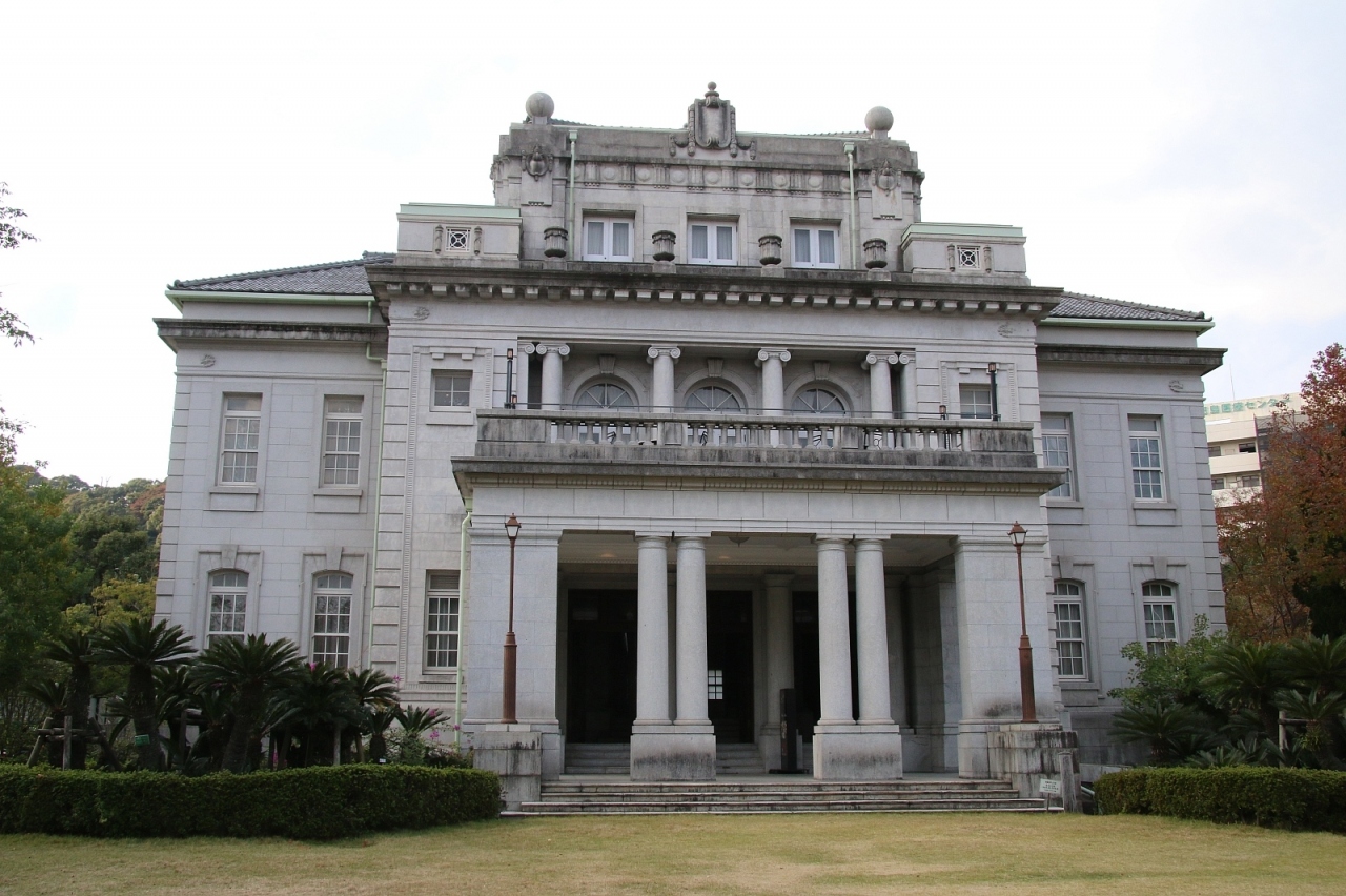 元々は大正末期に鹿児島県庁庁舎として建てられた建物を移設の際に玄関部分だけここに移築して県政記念館として利用しているそうです。また記念館の部分以外はカフェとして利用されていて大正期の建物でお茶することができる貴重な体験が出来そうです。