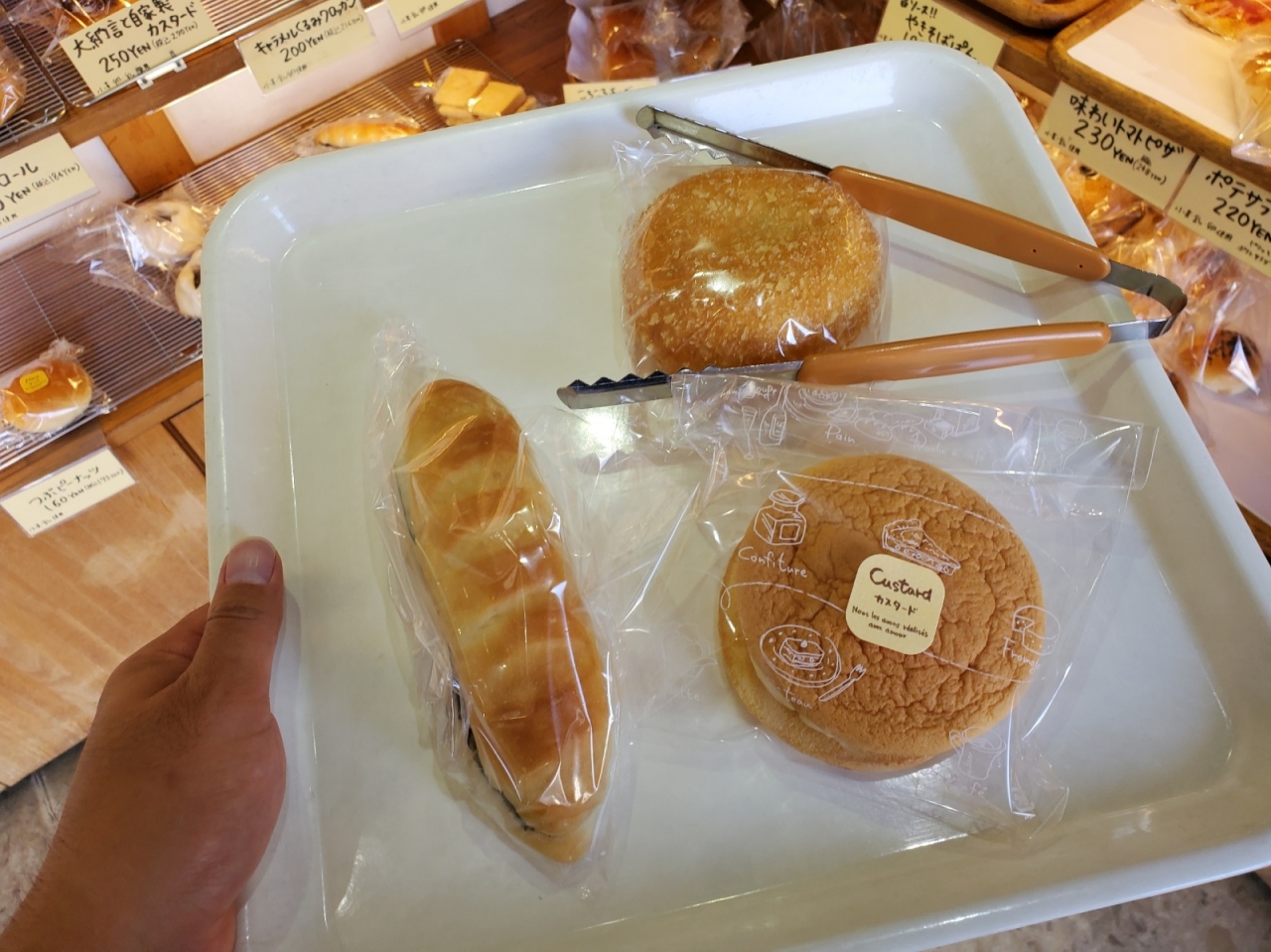 店のスペースの割に品数が豊富!そして買ったパンはどれも美味しかったです。カレーパン、あんバターサンド(商品名忘れた・・・)、自家製カスタードサンドを買いましたが、甘いパンは甘すぎずちょうどいい甘さですし、カレーパンのカレーは自家製だそうですが、良いパンチの利いた辛さでしたね。