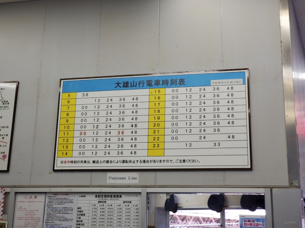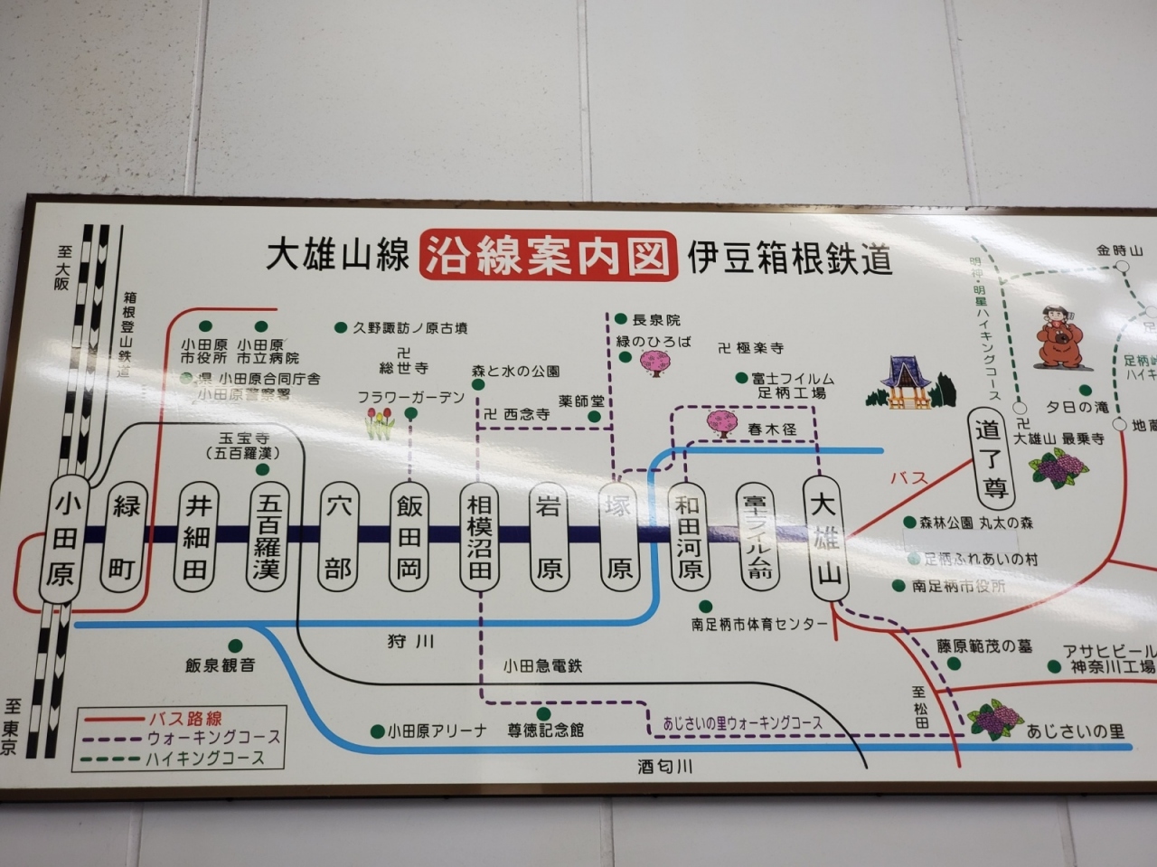小田原と南足柄の大雄山駅を結びます。大雄山駅からはバスで道了尊まで行くことが出来ます。ローカル鉄道で単線ですが割と本数が多く基本的に12分間隔で走っています。実は付近の小田急小田原線の各駅停車より本数は多いんですよね。