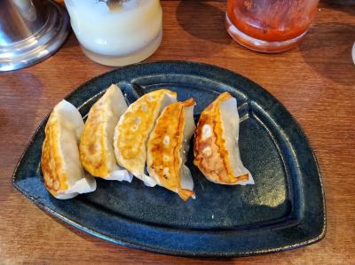 今回はセットメニューで餃子を付けましたがこれも美味しいですね。ラーメンも味普通だと辛すぎずに美味しいラーメンでした。