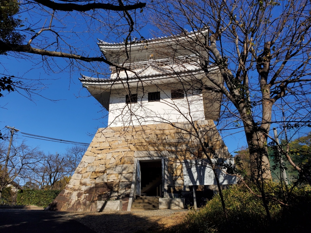 織田長益が築城を開始したものの移封になったため未成に終わった大草城址に整備された公園です。整備されたといっても小高い丘に広場と遊具がある公園に、模擬天守が建っているという形です。模擬天守は無料で入ることが出来る展望台になっていて、伊勢湾方面は開けているので良い景色が見えます。