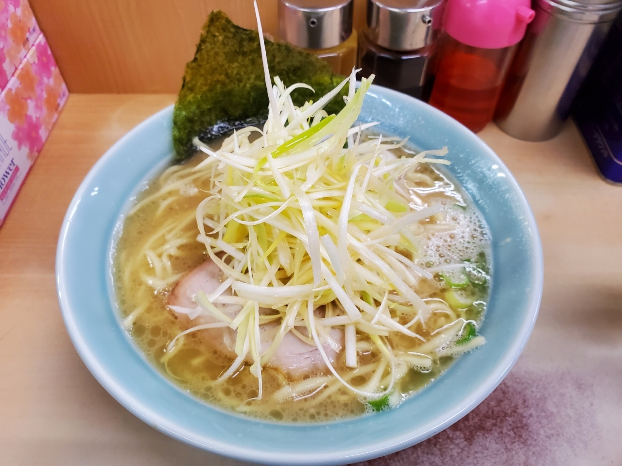 醤油・味噌・塩が基本でネギやチャーシューのトッピングなどがある形。最近の家系に比べるとメニューは少ない方かも。