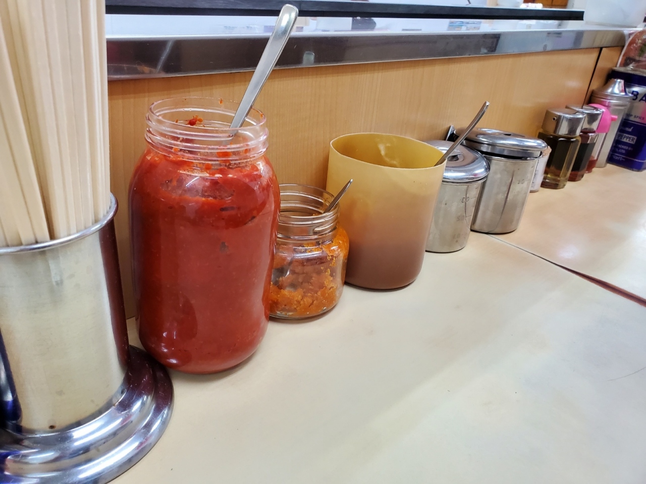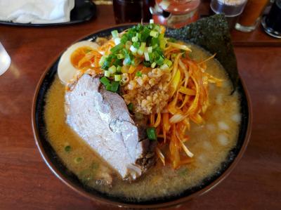 でも味は美味しいですしなんだかんだ店員さんたちも丁寧です。味変グッズも基本的なニンニク、豆板醤、ゴマ、胡椒などが置いてあります。大盛にすると結構なボリュームで出てきます。- 旅行時期