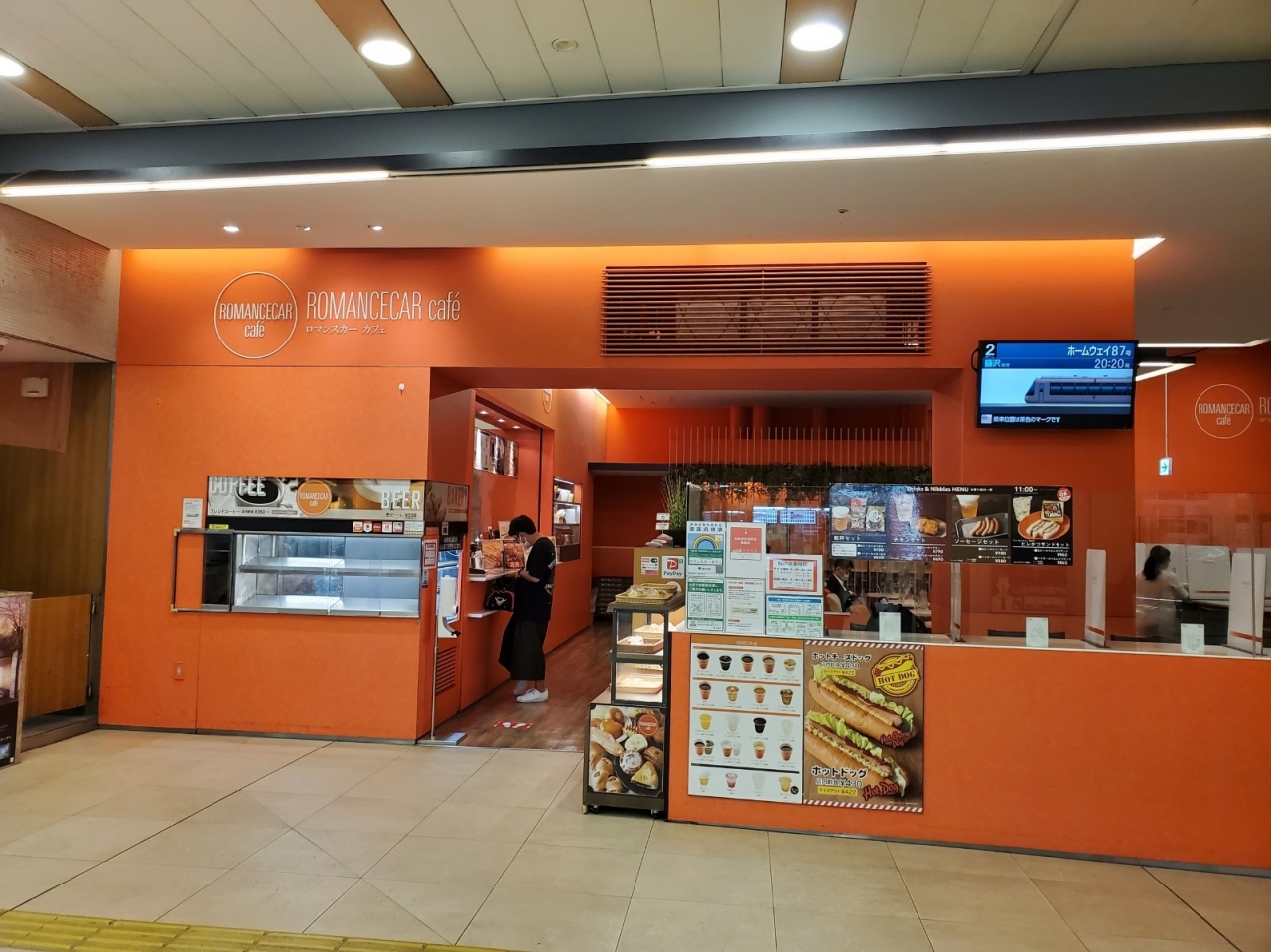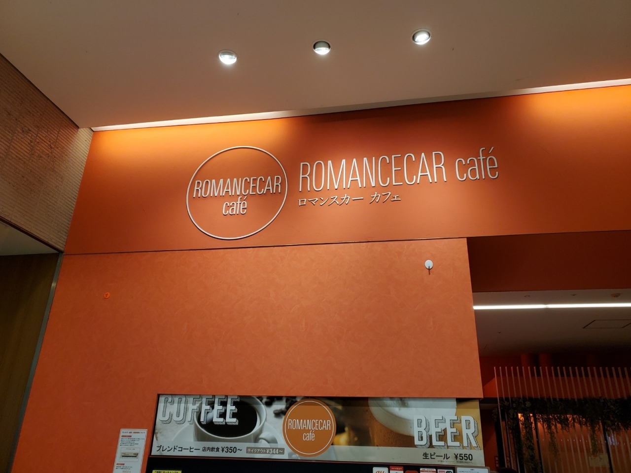 GSEで復活したかつてのロマンスカーカラー、バーミリオンオレンジをモチーフカラーにしていて、ロマンスカーと調和した雰囲気のお店になっています。- 旅行時期
