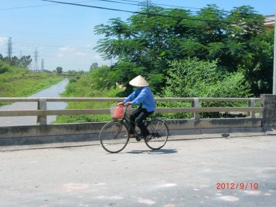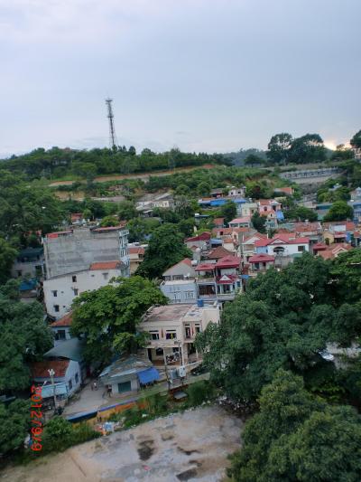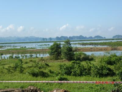ハロン湾からハノイへの帰り道・・・遠くにみえるのがハロン湾の岩礁です。